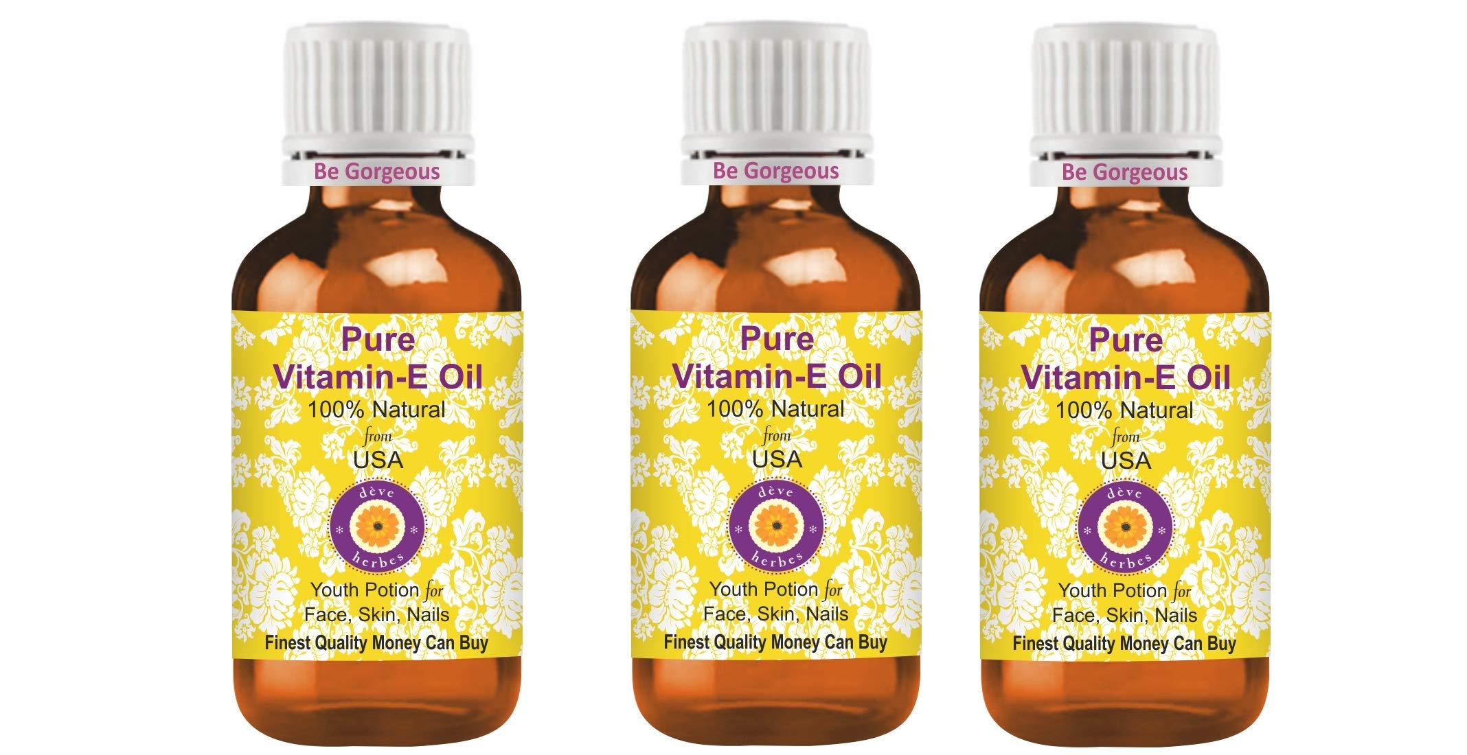 HOW TO USE: Carrier Oils can be applied directly to skin. It is derived from plant sources. Use it alone or with other oils to nourish your skin. It can also be used to dilute essential oils to carry them into the skin. CAUTION: This product does not have a child safety cap. Keep away from children. AROMA: Carrier Oils are NOT aromatic oils. Most natural carrier oils have FAINT OR NO AROMA. We do not add synthetic aroma to make our oils attractive, unlike many other brands. Pure Vitamin E Oil is used for therapeutic purposes has very faint or no aroma. Tens of thousands of our customers have experienced its therapeutic benefits. Quantity - 100ml X 3 (10 oz) Container Type - Three High Quality Amber Glass Bottle. 100 Pure, Natural, Undiluted, Premium, Therapeutic Grade Carrier Oil, Alcohol Free, Solvent Free, Vegan, Cruelty Free,. FINEST QUALITY MONEY CAN BUY. 100 SATISFACTION PURITY GUARANTEE - We, the manufacturer, Deve Herbes, guarantee that our oils are pure natural. We offer 100 satisfaction guarantee on our products. If you are unsatisfied for any reason we will replace your product or refund your money. We believe our oils will impart lasting therapeutic benefits to you. We believe in our products have been offering 'No Questions Asked Money Back Guarantee' for the last 11 Years.