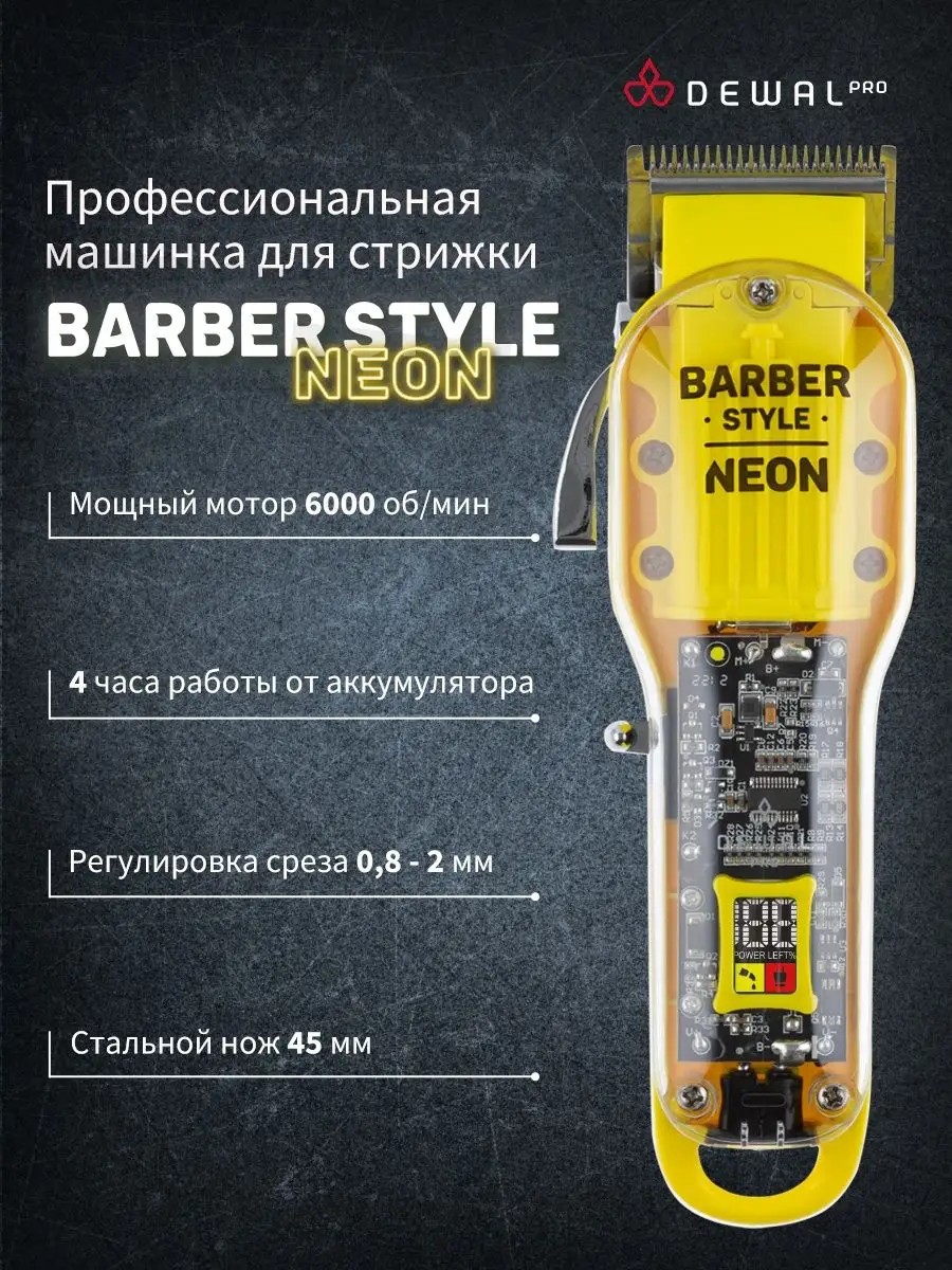 Машинка для стрижки волос мужская с насадками 03-081 Yellow BARBER STYLE NEON станет надежным помощником как для новичков, так и для опытных профессионалов.