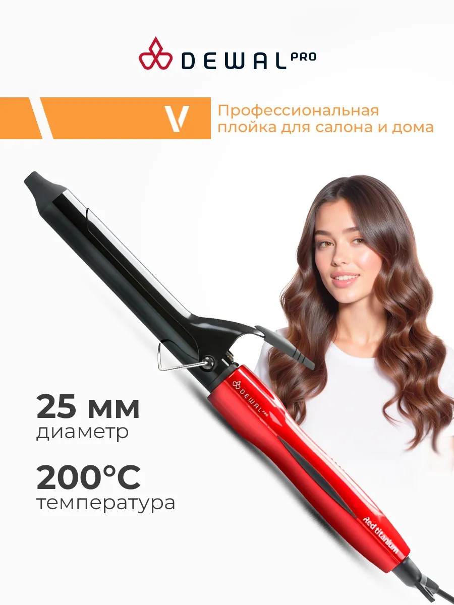 Плойка для волос 03-2025 DEWAL PRO RED TITANIUM — профессиональные щипцы для завивки, разработанные для создания локонов чёткой формы.