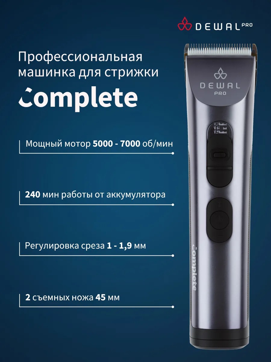 Машинка для стрижки 03-075 DEWAL PRO COMPLETE – профессиональный инструмент, который значительно снижает трудоёмкость стрижки и повышает скорость выполнения работ!