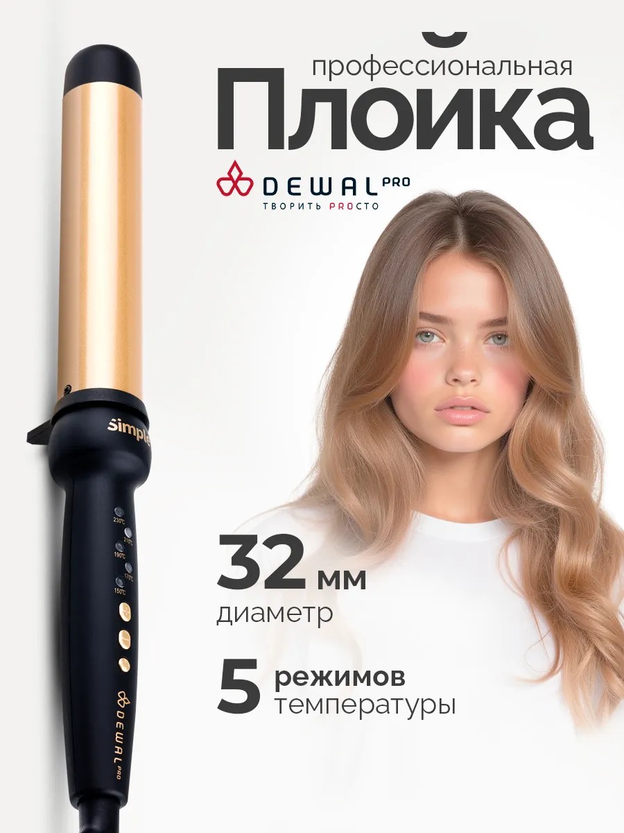 Профессиональная плойка Dewal Simple 03-32ST диаметром 32 мм предназначена для создания объёмных локонов и мягких волн.
