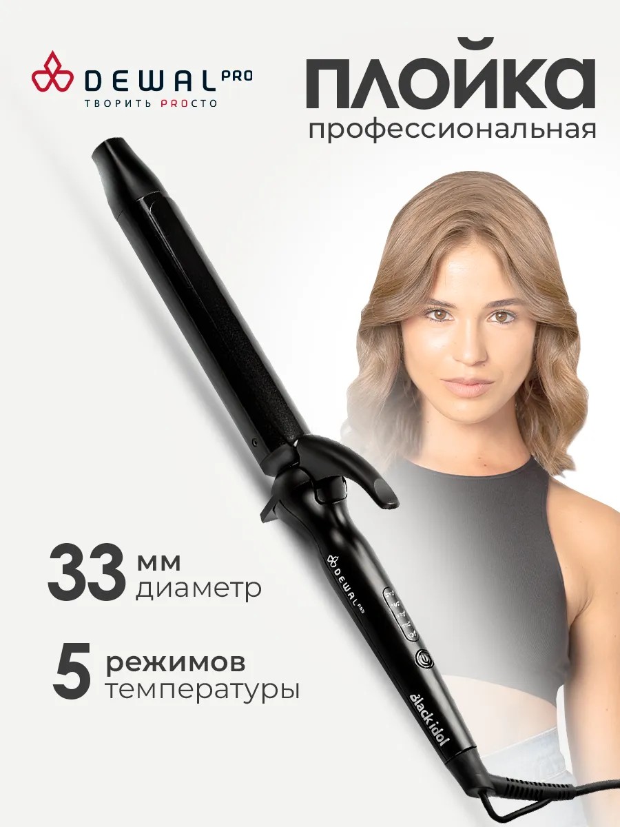 Профессиональная плойка для волос Dewal Black Idol с диаметром 33 мм идеально подходит для создания объёмных локонов и мягких волн.