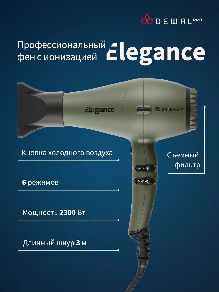 Dewal Фен профессиональный ионизация ELEGANCE 03-9010 Olive