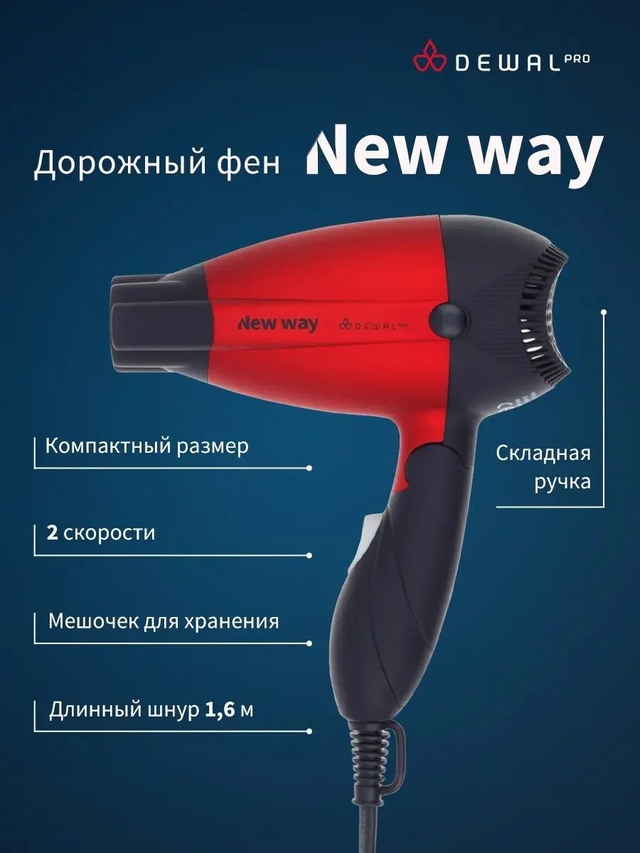 Dewal Фен дорожный компактный New Way 03-5512 Red