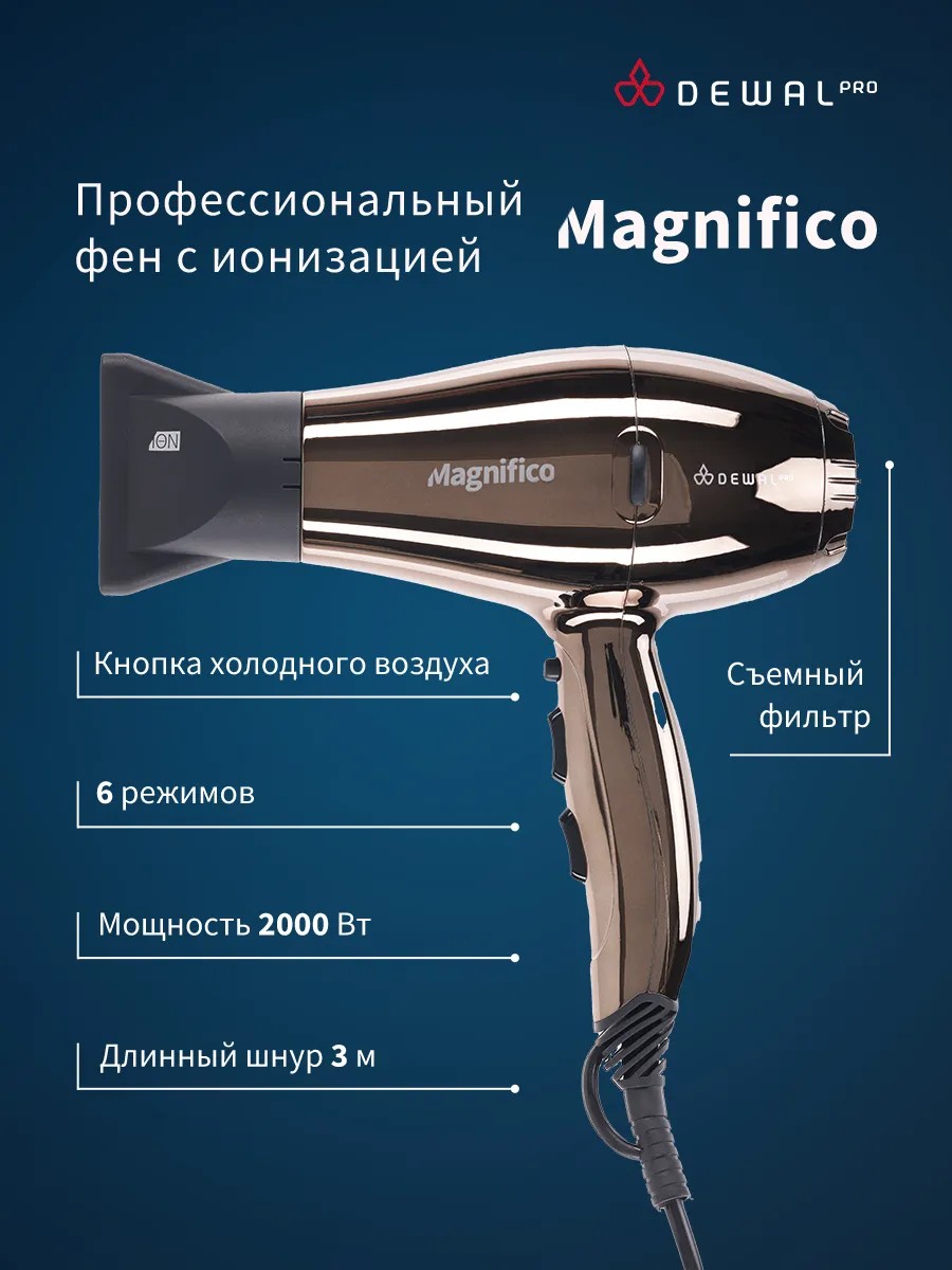 Dewal Фен для волос с ионизацией Magnifico 03-007 Brown
