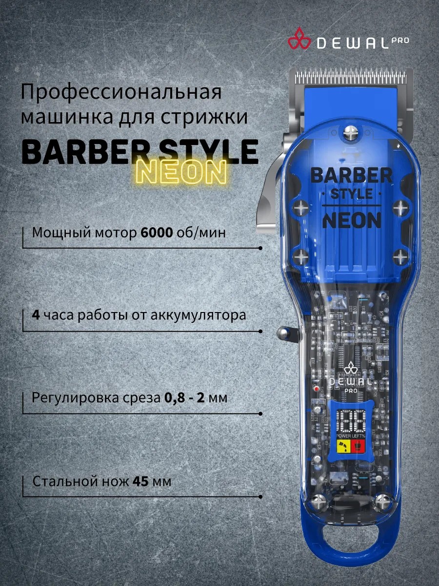 Профессиональные парикмахерские приборы занимают отдельную нишу в категории бытовая техника. Машинка для стрижки волос мужская серии BARBER STYLE NEON – подходит, как для традиционных стрижек, так и для точных, творческих и художественных работ, таких как чистая окантовка, плавный фейдинг и арт-дизайн. Прозрачный корпус беспроводной машинки – «изюминка», которая точно заинтересует как клиентов, так и мастеров вокруг! У машинки для бритья волос мощный надежный мотор роторного типа – 6000 оборотов в минуту, который позволяет достигнуть высокой точности среза. Машинка для стрижки волос работает от аккумулятора. Литий-ионный аккумулятор в 2500 mAh гарантирует продолжительное время автономной работы в 240 минут, полная зарядка займет 180 минут. В случае разряда аккумулятора вы сможете продолжать работу, подключив машинку к сети. Уровень заряд батареи отображается на цифровом экране при включении машинки. Ножевой блок шириной 45 мм с плавной регулировкой высоты среза от 0,8 до 2 мм, которая необходима для стрижки в стиле FADE. В комплект входят 6 насадок различной длины , масло и кисточка для ухода за ножевым блоком. С помощью профессионального парикмахерского прибора вы можете постричь волосы, сделать окантовку, придать форму бороде в салоне и в домашних условиях. Профессиональная машинка для стрижки волос и бороды станет отличным подарком профессионалу своего дела как мужчине, так и женщине. Перед использованием обязательно ознакомиться с Руководством! Снять все пломбы и защиты. Обращаем ваше внимание, на то что машинка роторного типа, поэтому ножи после выключения может становиться не ровно - это норма для такого типа машинок.