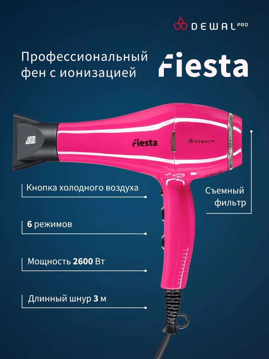 Dewal Фен профессиональный с ионизацией Fiesta 03-2010 Fuschia