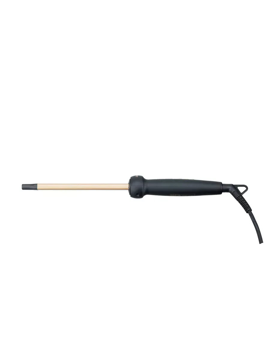 The Dewal Superslim 03-610B curling iron is designed for creating spiral afro curls. Its rectangular blade measures 16 x 10 mm. Curls are small, bouncy, and hold their shape for a long time. The curling iron has an extended working surface of 143 mm, making it suitable for short, medium, and long hair. Its titanium-tourmaline coating maintains healthy hair and adds shine after styling. The heating element is located along the entire length of the curling iron, ensuring even heating across the entire working surface.