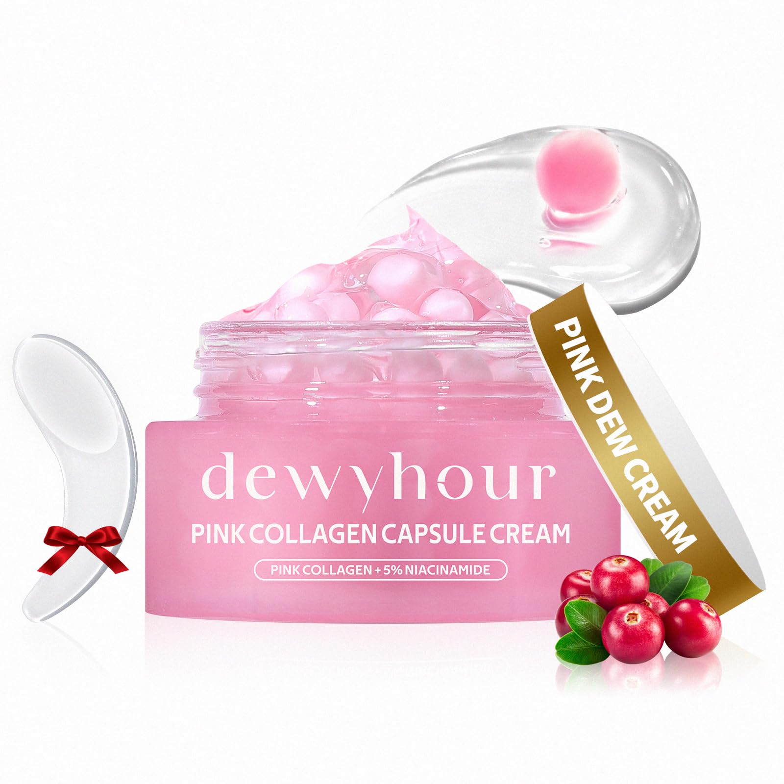 dewyhour Pink Collagen Capsule Face Cream Lightweight Face Moisturizer Smoothing & Firming Brightening Glow Improves Appearance of Uneven Tone Korean Skincare For Dry Skin