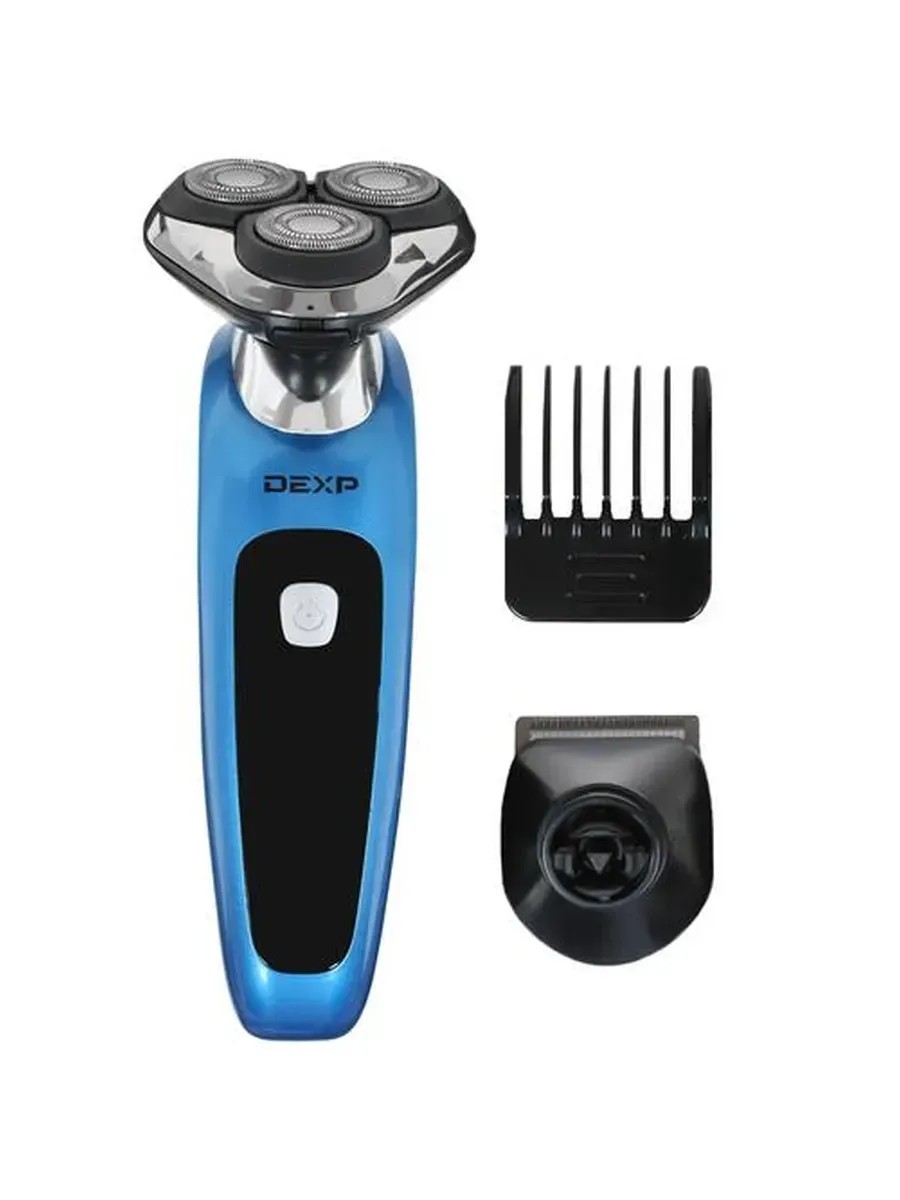 The DEXP SH-3000 electric shaver features a blue and black ergonomic design. It is designed for dry shaving. Its rotary shaving system ensures a faster, closer shave: three floating heads ensure effective results. A trimmer is included for removing ear and nose hairs.