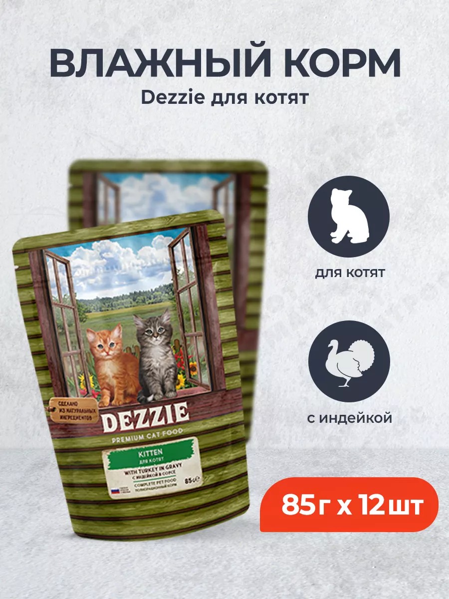 Dezzie влажный корм для котят с индейкой в соусе - 85 г х 12 шт