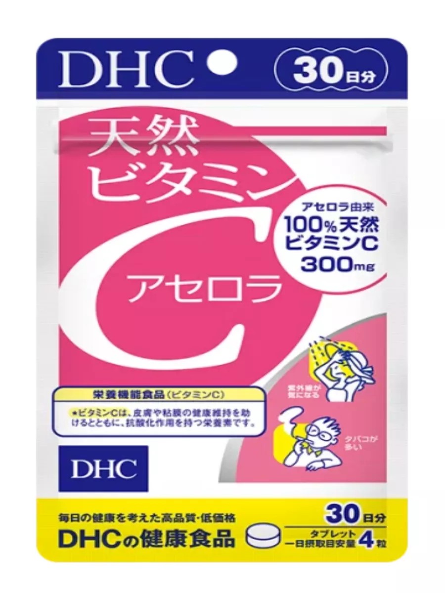 DHC Natural Vitamin C from Acerola Juice 120 Tablets. To maintain youth and health for a long time, to feel great and not get sick, you need to get enough vitamin C. But given the modern pace of life, constant exposure to stress and an unbalanced diet, this is difficult to do. In such a situation, the Japanese supplement DHC vitamin C, which is extracted from acerola juice, comes to the rescue. It replenishes the deficiency of the vitamin element, which, moreover, is destroyed under the influence of nicotine, alcohol, ultraviolet rays. Acerola is famous for its high content of vitamin C, it is 34 times more than in lemon juice. This supplement from Japan is based on acerola juice. It is from it that vitamin C is extracted, which has the following beneficial properties for the human body: maintains the beauty of the skin; stimulates the production of its own collagen; prolongs youth; fights aging, preventing the appearance of early wrinkles; has an antioxidant effect, neutralizes free radicals; strengthens the immune system; Helps the body fight viruses and colds; blocks inflammatory processes; improves memory; alleviates diabetes; supports heart muscle function; has a positive effect on the structure and condition of blood vessels; significantly reduces the risk of various infections; helps manage excess weight; controls blood sugar levels. DHC Vitamin C is an innovative development by Japanese scientists. It ensures youth, beauty, and health for many years. With this product, you can forget about visiting doctors and cosmetologists, because there is simply no need for specialist help. Directions: Take 4 tablets daily with water. The package lasts 30 days. Ingredients (4 tablets): acerola juice 1320 mg (natural vitamin C 300 mg).