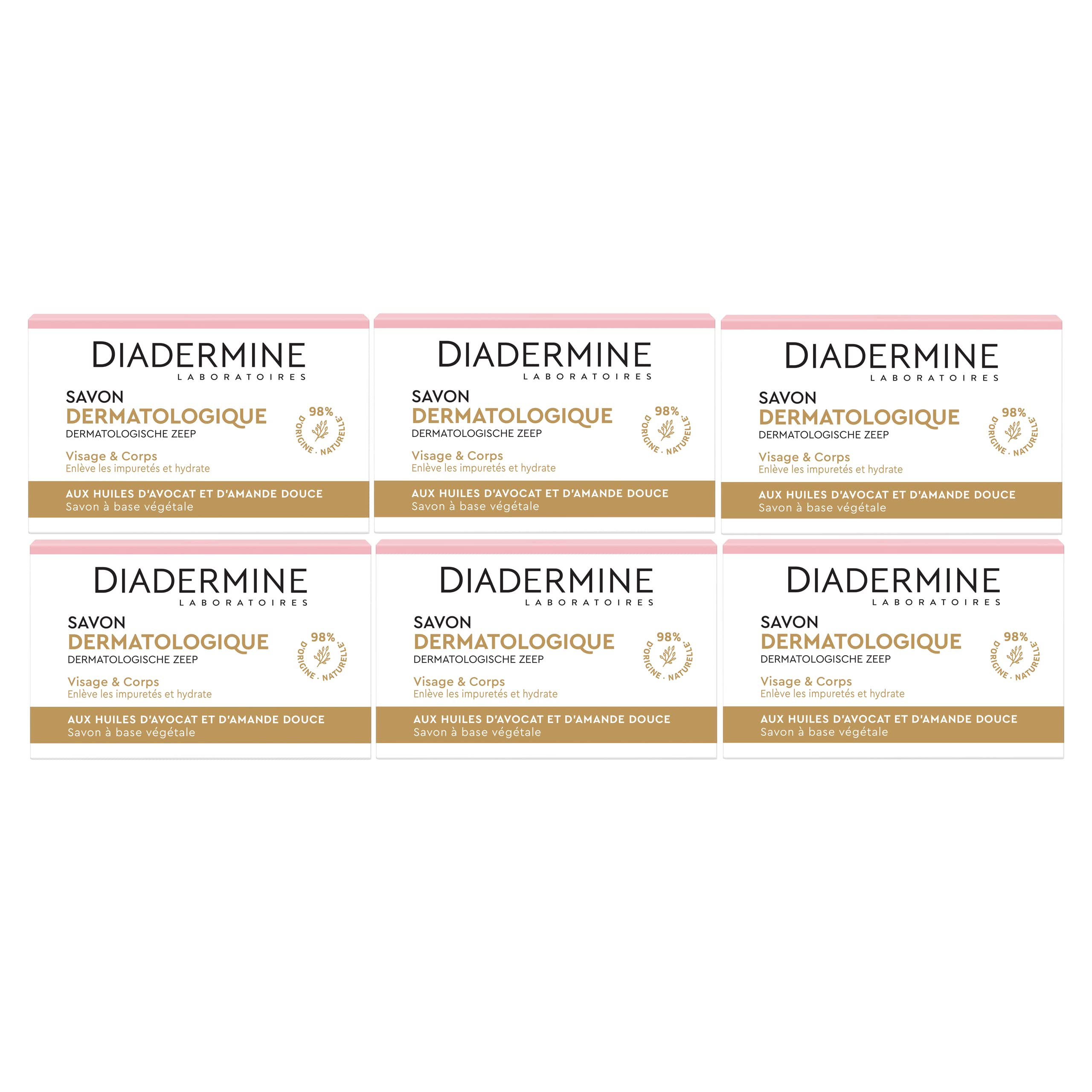 Diadermine - Savon dermatologique aux extraits hydratants d'amande douce et avocat - Visage et Corps - Nettoie et protège la peau du dessèchement - Savon de 100g - Lot de 6