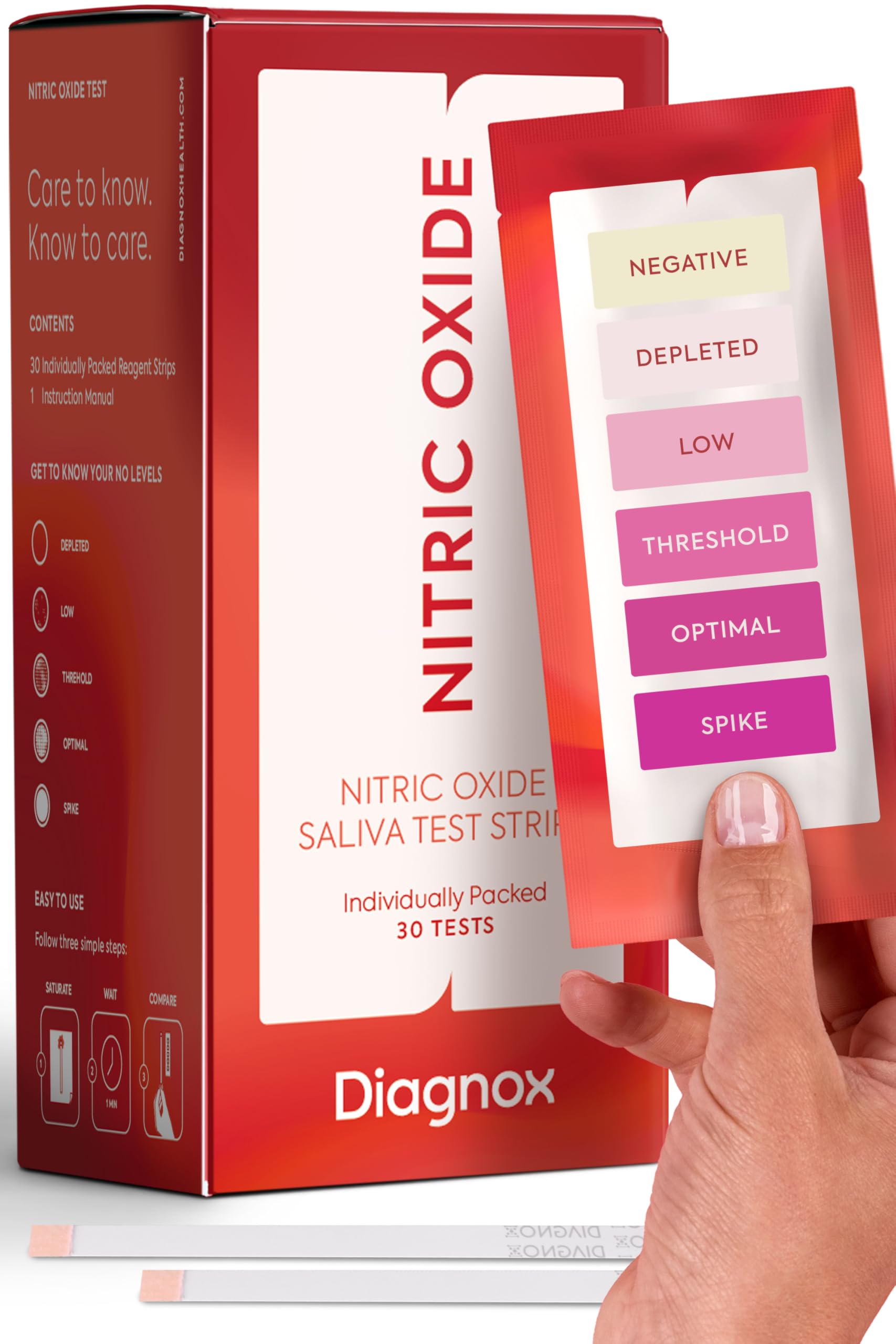 Diagnox Nitric Oxide Test Strips Individually Packed Saliva Test - Nitric Oxide Indicator Strips for Wellness Cardiovascular Health Vitality Performance & Men s Health 30 Tests 1 Count (Pack of 30)