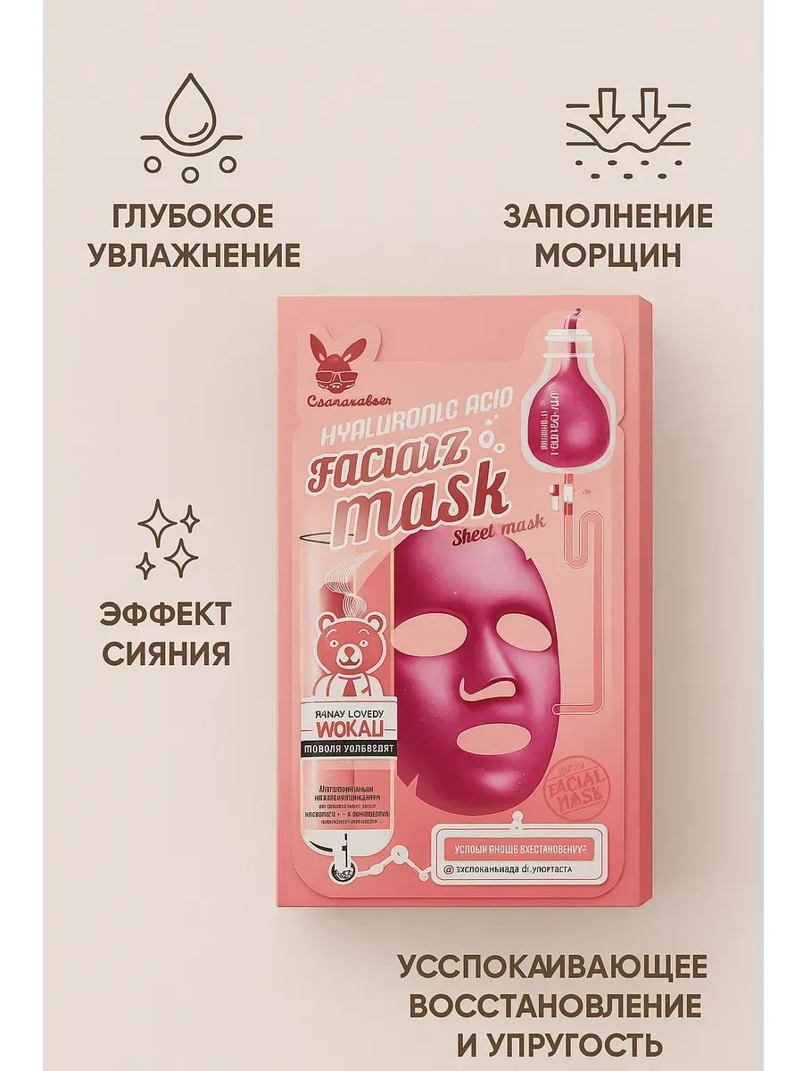 Главным компонентом является гиалуроновая кислота — мощный увлажнитель, который притягивает и удерживает влагу в глубоких слоях кожи, помогая справиться с сухостью, шелушением, тусклым тоном и первыми признаками старения. Средство подходит для всех типов кожи, включая чувствительную, и рекомендовано как маска для сухой кожи лица, а также в случаях, когда требуется интенсивное восстановление.