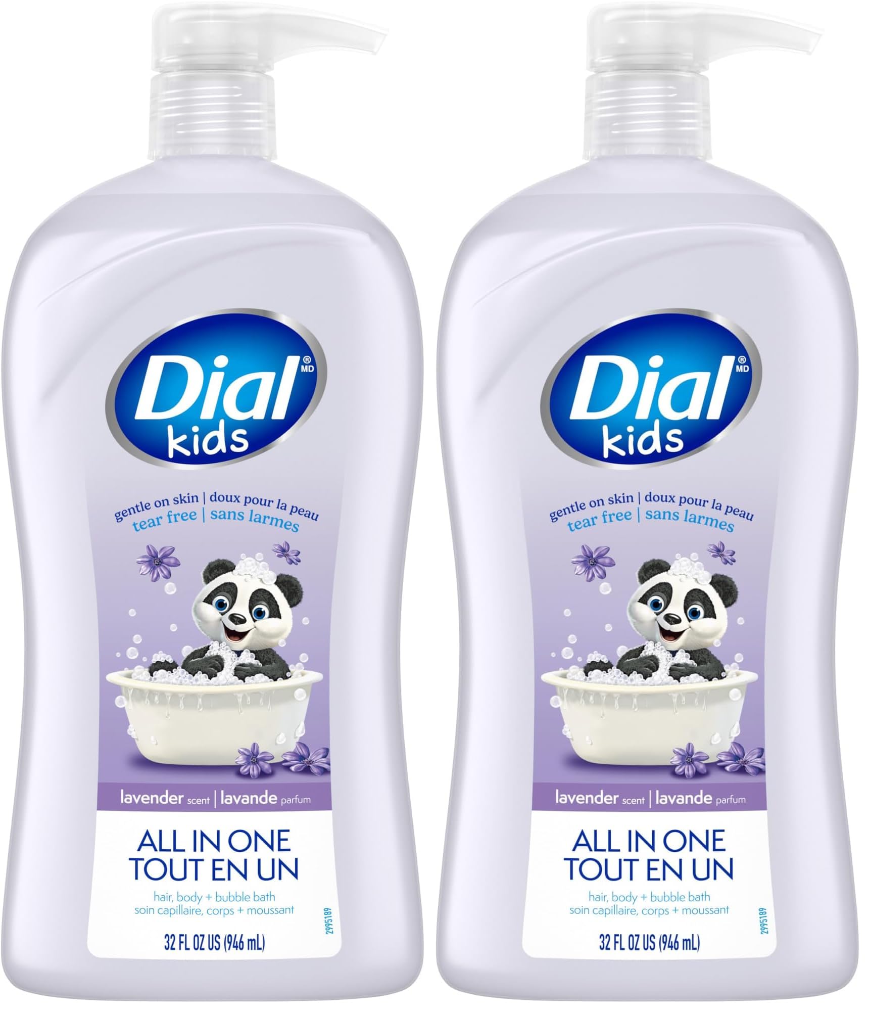 Dial Kids All-in-1 Body + Hair + Bubble Bath Lavender Scent 32 Fl Oz Hypoallergenic Body Wash & Shampoo No Tears Formula for Kids 2+ Years No Parabens & Silicones (Pack of 2) 32 Fl Oz (Pack of 2)