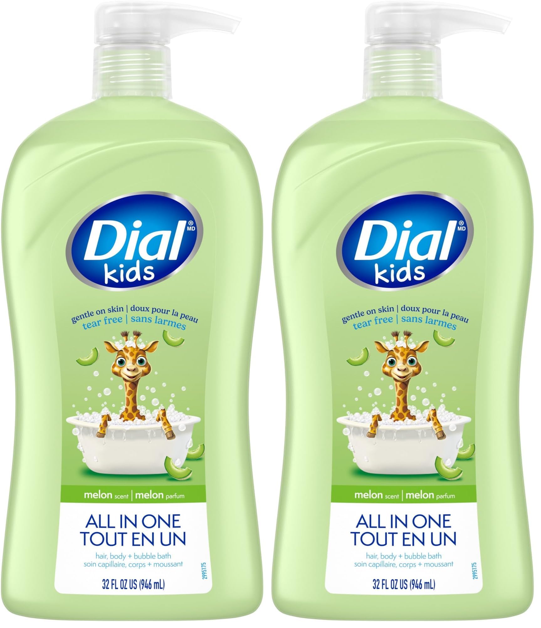 Dial Kids All-in-1 Body Wash + Hair + Bubble Bath Melon Scent 32 Fl Oz Hypoallergenic Body Wash & Shampoo No Tears Formula for Kids 2+ Years No Parabens & Silicones (Pack of 2) 32 Fl Oz (Pack of 2)