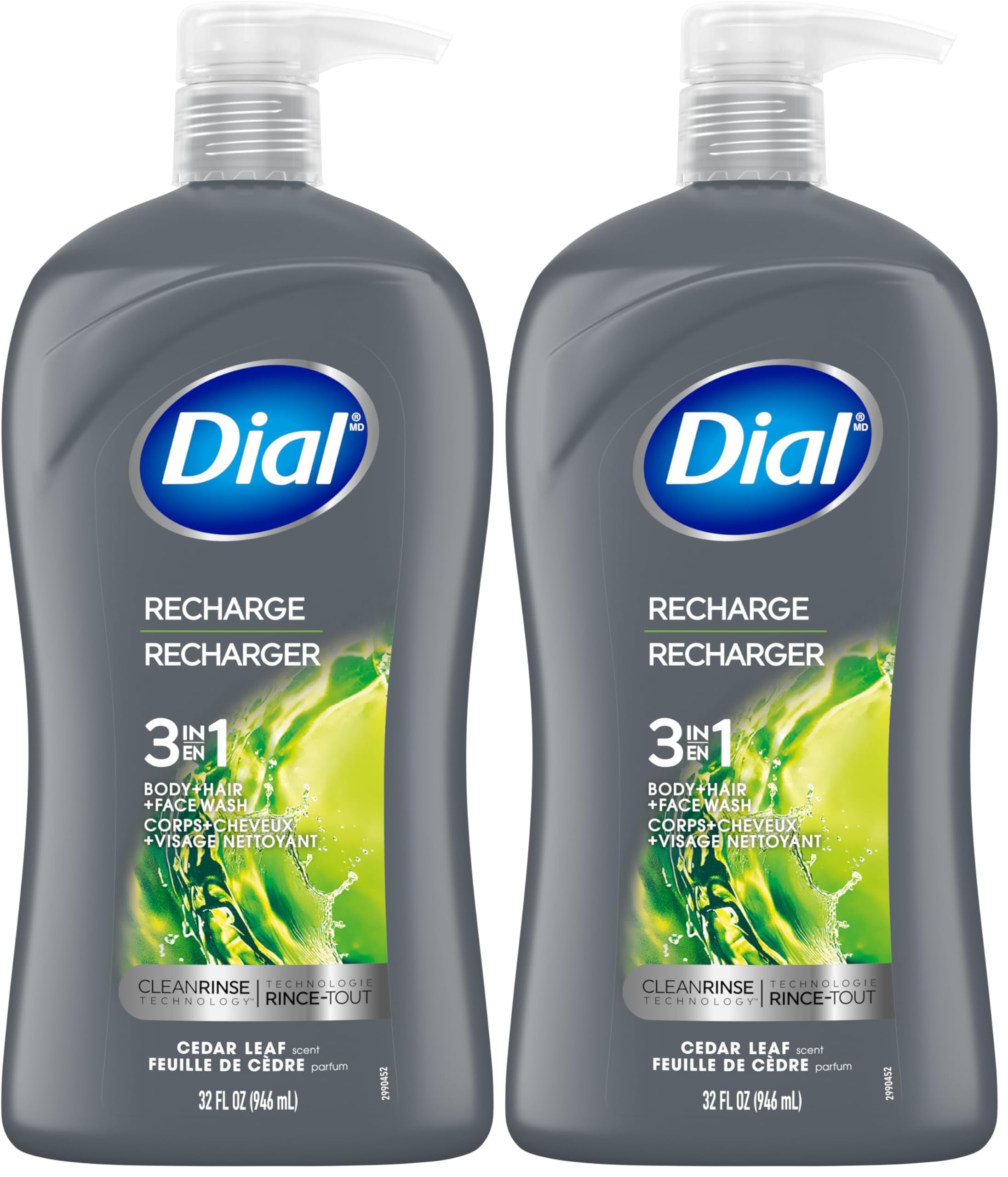 Dial Men 3 in 1 Body Hair and Face Wash Recharge 32 Fl Oz Cedar Leaf Scent Cleanses Deep + Gentle on Skin with Clean Rinse Technology (Pack of 2) 32 Fl Oz (Pack of 2)