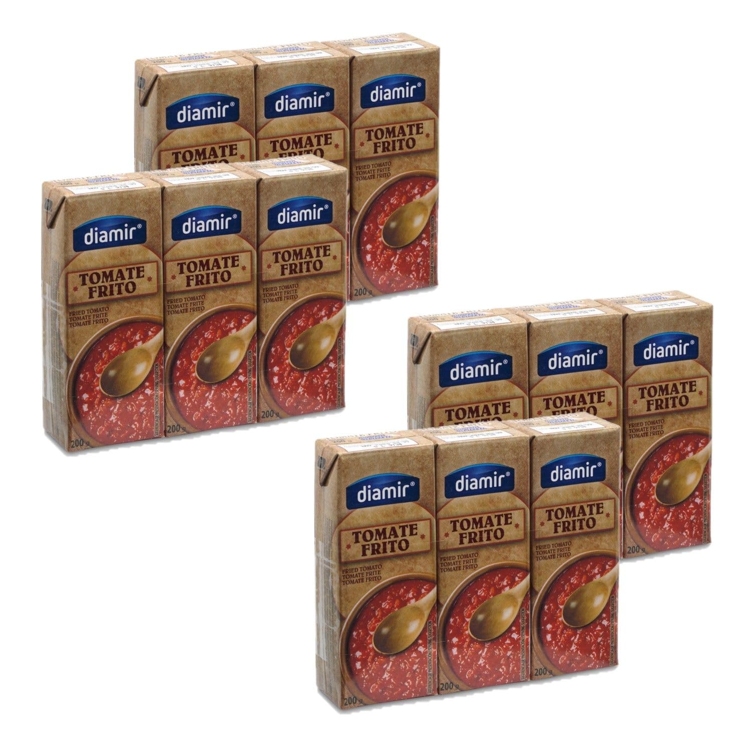 This pack contains 4 products described below: Diamir Fried Tomatoes, presented in a 600g pack, are pieces of ripe and juicy tomatoes, gently cooked in sunflower oil for a unique recipe. Ready to add to your dishes for a touch of Mediterranean flavor. Ingredients: Tomato and tomato paste, sunflower oil, modified corn starch, sugar, vegetables (onion and garlic), salt, acidifier E-330. Allergens: None Storage Instructions: Store at room temperature, away from heat and humidity before opening. Usage Tips: Use these fried tomatoes to enrich your sauces and top your pizzas. A real treat for lovers of Mediterranean cuisine. Product Information: Net Weight: 600g Origin: Spain Energy: 325kJ 78kcal Fat: 3.7g of which saturates 0.4g Carbohydrate: 9.6g of which sugars 6.4g Protein: 1g Dietary Fiber: Not Applicable Salt: 0.95g Packaging: Cardboard Box Full details are available on the product packaging. The information on this page is for guidance only. We encourage you to read the information on the product label, especially regarding food allergies. INGREDIENTS Tomato and tomato paste, sunflower oil, modified corn starch, sugar, vegetables (onion and garlic), salt, acidifier E-330. SAFETY WARNING Full details are available on the product packaging. The information on this page is for guidance only. We encourage you to read the product label, especially regarding food allergies. See moreLot 4x Tomate frite - pack 3x200g - Etui 600gDESCRIPTION DU PRODUIT DESCRIPTION DU PRODUIT Ce lot contient 4 produits décrits ci-dessous : Les tomates frites de Diamir, présentées dans un étui de 600g, sont des morceaux de tomates mûrs et juteux, délicatement revenus dans l'huile de tournesol pour obtenir une recette unique. Prêtes à être ajoutées à vos plats pour une touche de saveur méditerranéenne. Ingrédients : Tomate et concentré de tomate, huile de tournesol, amidon de maîs modifié, sucre, légumes (oignon et ail), sel, acidifiant E-330. Allergènes : Aucun Mode de conservation : A conserver à température ambiante, à l'abri de la chaleur et de l'humidité avant ouverture. Conseil d'utilisation : Utilisez ces tomates frites pour enrichir vos sauces, garnir vos pizzas. Un véritable régal pour les amateurs de cuisine méditerranéenne. Informations produit : Poids net : 600g Origine : Espagne Energie : 325KJ 78Kcal Lipides : 3,7g dont acides gras saturés 0,4g Glucides : 9,6g dont sucres 6,4g Protéines : 1g Fibres alimentaires : NCg Sel : 0,95g Emballage : Etui en Carton Détail complet et disponible sur l'emballage du produit. Les informations présentes sur cette page sont à titre indicatif. Nous vous invitons à prendre connaissance des informations sur l'étiquette du produit, en particulier concernant les allergies alimentaires. INGRÉDIENTS Tomate et concentré de tomate, huile de tournesol, amidon de maîs modifié, sucre, légumes (oignon et ail), sel, acidifiant E-330. AVERTISSEMENT DE SÉCURITÉ Détail complet et disponible sur l'emballage du produit. Les informations présentes sur cette page sont à titre indicatif. Nous vous invitons à prendre connaissance des informations sur l'étiquette du produit, en particulier concernant les allergies alimentaires. Voir plus