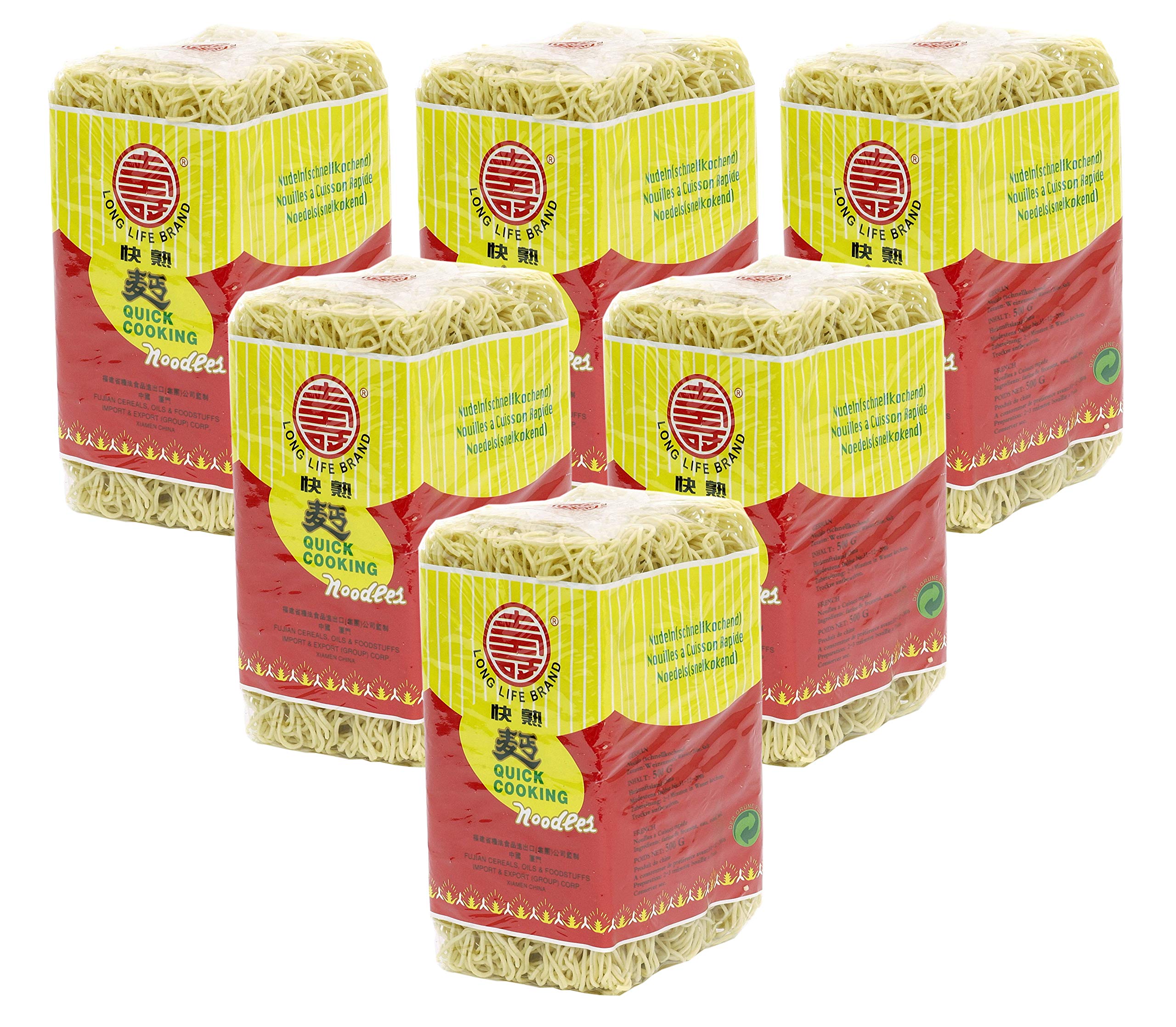 [6 x 500g 3.000g] Quick-cooking noodles. LONG LIFE brand quick-cooking noodles Ingredients: wheat flour, water, salt. Allergens: Wheat.