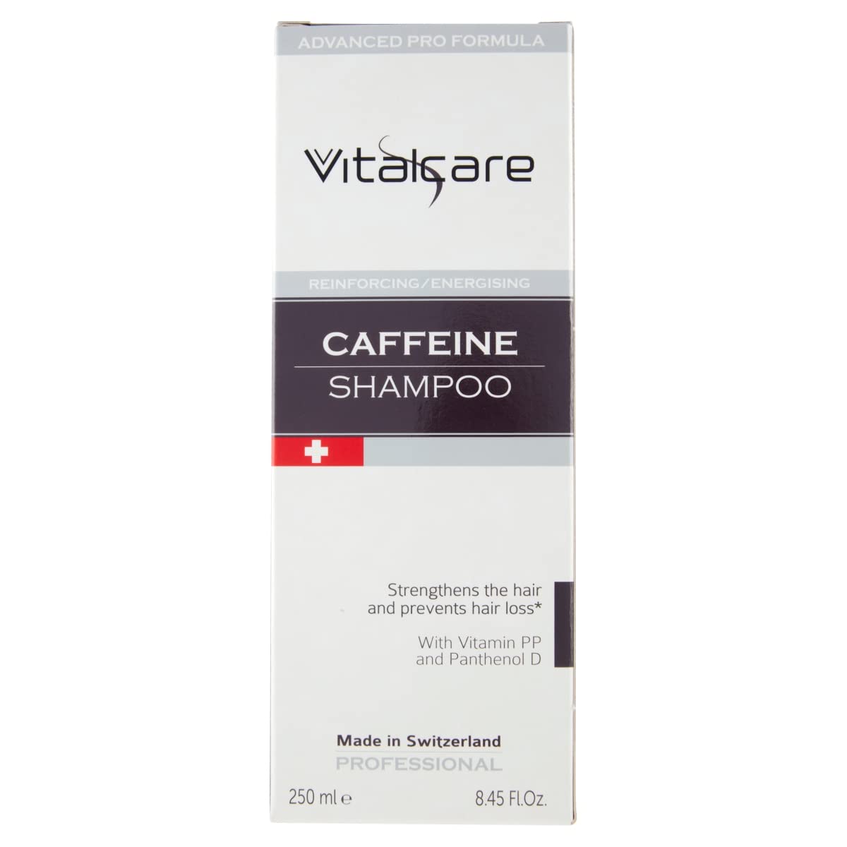 Caffeine Shampoo: Vitalcare Caffeine Shampoo is designed to help strengthen hair and combat hair loss, thanks to the strengthening and invigorating properties of this powerful active ingredient. This active ingredient has been proven to help prevent hair loss. - Formula: Its exclusive formula is enriched with panthenol and taurine, which help strengthen and revitalize hair, leaving a pleasant feeling of freshness on the scalp. - Active ingredients: Caffeine, Taurine, Panthenol D, Lysine, Arginine, Vitamin PP, Menthol, Sodium PCA. - Directions for use: Apply the correct amount of product to your entire head of hair, massage gently, and rinse. Apply a second time, leaving it on for 2-3 minutes, then rinse thoroughly. We recommend a cycle of at least 2 months in conjunction with the Vitalcare Caffeine treatment. - VITALCARE SWISS: Swiss expertise in trichology and Vitalcare's professionalism in hair care come together in the Vitalcare line, specifically designed in Switzerland. This line of products, including ampoules and shampoos, offers anti-hair loss, anti-dandruff, and sebum-regulating action. Developed in collaboration with Swiss laboratories, these products are targeted treatments. INGREDIENTS Aqua (Water), Sodium Laureth Sulfate, Cocamidopropyl Betaine, Sodium Chloride, Taurine, Caffeine, Panthenol, Lysine HCL, Arginine HCL, Niacinamide, Polyquaternium-7, Sodium PCA, Menthol, Sodium Lauroyl Glutamate, Disodium Cocoyl Glutamate, Sodium Hydro Roue drolyzed at Protein, PEG-120 Methyl Glucose Trioleate, Disodium Laureth Sulfosuccinate, Sodium Lauryl Sulfoaceate, Tetrasodium EDTA, Propylene Glycol, Coceth-7, PPG-1-PEG-9 Lauryl Glycol Ether, PEG-40 Hydrogenated Castor Oil, Citric Acid, Parfum (Fragrand ce), methyl. Chloroisothiazolinone, Methylisothiazolinone, Magnesium Chloride, Nitrate, CI 19140 (Yellow 5) DIRECTIONS FOR USE Apply the correct amount of product to all of your hair, massage gently, and rinse. Apply a second time, leaving it on for 2-3 minutes, then rinse thoroughly. See moreVITALCARE SWISS: Swiss expertise in trichology and Vitalcare's professionalism in hair care come together in the Vitalcare Specifici line, Made in Switzerland. This line of products, including ampoules and shampoo, offers anti-hair loss, anti-dandruff, and sebum-regulating action. Developed in collaboration with Swiss laboratories, these products are targeted treatments. Directions for use: Apply the correct amount of product to the entire head of hair, massage gently, and rinse. Apply a second time, leaving it on for 2-3 minutes, then rinse thoroughly. We recommend a cycle of at least 2 months in conjunction with the Vitalcare caffeine treatment. Active ingredients: Caffeine, Taurine, Panthenol D, Lysine, Arginine, Vitamin PP, Menthol, Sodium PCA. Formula: Its exclusive formula is enriched with panthenol and taurine, which help strengthen and revitalize the hair, leaving a pleasant feeling of freshness on the scalp. Caffeine shampoo: Vitalcare caffeine hair shampoo is designed to help strengthen hair and combat hair loss, thanks to the strengthening and invigorating properties of this powerful active ingredient it has indeed been proven that this active ingredient helps prevent hair loss.Vitalcare Swiss - Shampooing Caféine, Renforçant et Énergisant, Renforce les Cheveux et Prévient la Chute, Avec Vitamine PP et Panthénol D, 250 mlDESCRIPTION DU PRODUIT DESCRIPTION DU PRODUIT Shampooing caféine : le shampooing cheveux caféine Vitalcare est étudié pour contribuer au renforcement du cheveu et pour lutter contre la chute, grâce aux propriétés renforçantes et revigorantes de ce puissant principe actif il a en effet été prouvé que cet actif aide à prévenir la chute des cheveux. - Formule : Sa formule exclusive est enrichie en panthénol et Taurine, qui contribuent à apporter force et vitalité au cheveu, laissant une agréable sensation de fraîcheur dans le cuir chevelu. - Principes actifs : caféine, Taurine, Panthénol D, Lysine, Arginine, Vitamine PP, Menthol, Sodium PCA. - Mode d'emploi : doser la bonne quantité de produit sur toute la chevelure, masser doucement et rincer. Effectuer une deuxième application en laissant poser 2 3 minutes puis rincer soigneusement. Nous vous recommandons un cycle d'au moins 2 mois en association avec le traitement de la caféine Vitalcare. - VITALCARE SWISS : L'efficacité suisse dans le domaine trichologique et le professionnalisme Vitalcare dans le soin des cheveux s'unissent dans la ligne Vitalcare spécifique Made in Switzerland. Une ligne de produits à action anti-chute, antipelliculaire et séborégulatrice, avec ampoules et shampo, étudiés en collaboration avec les laboratoires suisses, comme traitements spécifiques. INGRÉDIENTS Aqua (Water), Sodium Laureth Sulfate, Cocamidopropyl Betaine, Sodium Chloride, Taurine, Caféine, Panthenol, Lysine HCL, Arginine HCL, Niacinamide, Polyquaternium-7, Sodium PCA, Menthol, Sodium Lauroyl Glutamate, Disodium Cocoyl Glutamate, Sodium Hydro Roue drolyzed at Protein, PEG-120 Methyl Glucose Trioleate, Disodium Laureth Sulfosuccinate, Sodium Lauryl Sulfoacéate, Tetrasodium EDTA, Propylene Glycol, Coceth-7, PPG-1-PEG-9 Lauryl Glycol Ether, PEG-40 Hydrogenated Castor Oil, Citric Acid, Parfum (Fragrand ce), méthylle. Chloroisothiazolinone, Methylisothiazolinone, Chloride magnésium, Nitrate, CI 19140 (Yellow 5) MODE D'EMPLOI Doser la bonne quantité de produit sur toute la chevelure, masser doucement et rincer. Effectuer une deuxième application en laissant poser 2 3 minutes puis rincer soigneusement. Voir plusVITALCARE SWISS : l'efficacité suisse dans le domaine trichologique et le professionnalisme Vitalcare dans le soin des cheveux s'unissent dans la ligne Vitalcare Specifici Made in Switzerland. Une ligne de produits à action anti-chute, antipelliculaire et séborégulatrice, avec ampoules et shampo, étudiés en collaboration avec les laboratoires suisses, comme traitements spécifiques. Mode d'e