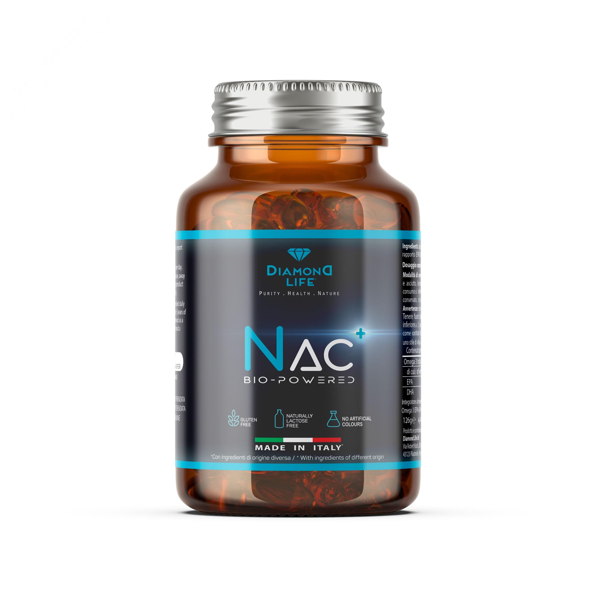 Diamond Life NAC BioPowered Nutraceutical with antioxidant effect and detox Nacetylcysteine precursor of glutathione high bioavailability 90 capsules