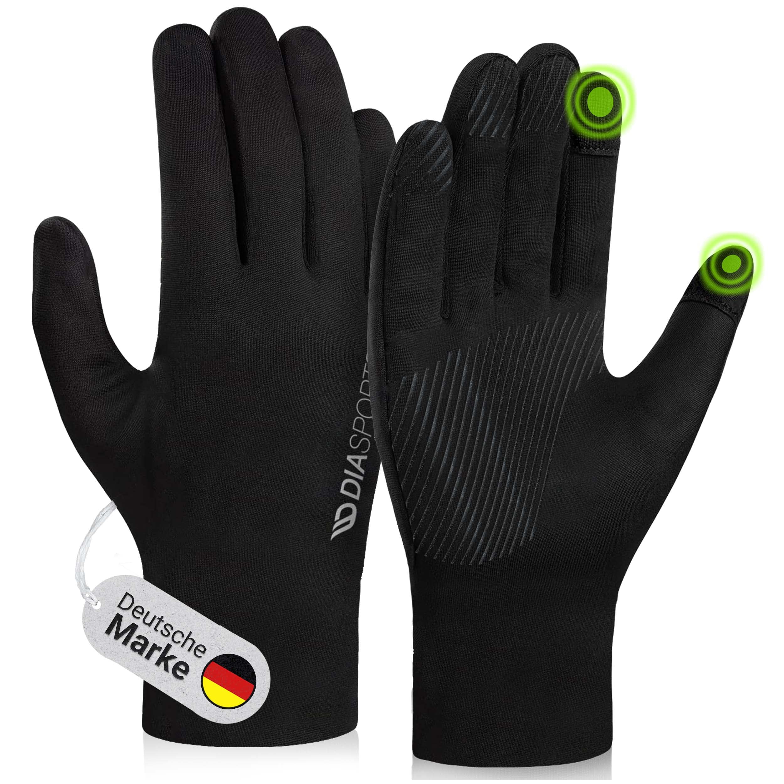 Support German start -up - diasports stands for innovative and stylish products at a fair price.We are a start-up from North Rhine-Westphalia and work with professionals like Iron-Man World Champion Christian Haupt to develop the best products for you.What are you waiting for.A good figure everywhere - you are guaranteed with our fabric hand shoes.Because these are suitable as running gloves, bicycle gloves, riding gloves, in football as field player gloves or in everyday life for men and women.Our winter bike gloves can either be worn as a underweath gloves or alone.Warm and dry hands - our fabric gloves are designed in such a way that they keep your hands warm and at the same time release the resulting moisture in the glove.So that your hands stay warm but dry.Innovative, practical and good for your skin.Guaranteed everything under control-thanks to the anti-slip coating in the inner area, you hold everything safely in your hand.Whether cycling, football, jogging, riding or in everyday life - our windproof gloves give you the grip you need.Also on the motorcycle, scooter or in the car.Everything is under control.You don't want to move out anymore: . and don't have to, because our sports gloves have a touchscreen function on thumb and index finger that can easily operate your smartphone, tablet or navigation system.A short photo in betweenSend a voice messageLet your new thermal shoes!.DEUTSCHES START-UP UNTERSTÜTZEN - Diasports steht für innovative und stylische Produkte zum fairen Preis. Wir sind ein Start-Up aus Nordrhein-Westfalen und arbeiten mit Profis wie Iron-Man-Weltmeister Christian Haupt zusammen, um für dich die besten Produkte zu entwickeln. Worauf wartest du noch. ÜBERALL EINE GUTE FIGUR - machst du mit unseren Stoffhandandschuhen garantiert. Denn diese eignen sich als Laufhandschuhe, Fahrradhandschuhe, Reithandschuhe, im Fußball als Feldspielerhandschuhe oder im Alltag für Mann und Frau. Unsere Winterfahrradhandschuhe können entweder als Unterziehhandschuhe oder alleine getragen werden. WARME UND TROCKENE HÄNDE - Unsere Stoffhandschuhe sind so konzipiert, dass sie deine Hände warm halten und gleichzeitig die entstehende Feuchtigkeit im Handschuh nach außen abgeben. Damit deine Hände warm, aber trocken bleiben. Innovativ, praktisch und gut für deine Haut. GARANTIERT ALLES IM GRIFF - Dank der Anti-Rutsch-Beschichtung in der Innenfläche hältst du alles sicher in der Hand. Ob beim Radfahren, Fußball, Joggen, Reiten oder im Alltag - unsere winddichten Handschuhe geben dir den Grip den du brauchst. Auch auf dem Motorrad, Roller oder im Auto. Alles im Griff. DU WILLST SIE NICHT MEHR AUSZIEHEN: .und musst das auch nicht, denn unsere Sporthandschuhe verfügen über Touchscreen-Funktion an Daumen und Zeigefinger, die dich problemlos dein Smartphone, Tablet oder Navi bedienen lassen. Ein kurzes Foto zwischendurchEine Sprachnachricht verschickenLass deine neuen Thermohandschuhe an!.Diasports Handschuhe Herren Damen Touchscreen Laufhandschuhe Fahrradhandschuhe mit Anti-Rutsch Winterhandschuhe Outdoor Schwarze Handschuhe Sport Dünne Winter Thermohandschuhe Fußball M Schwarz