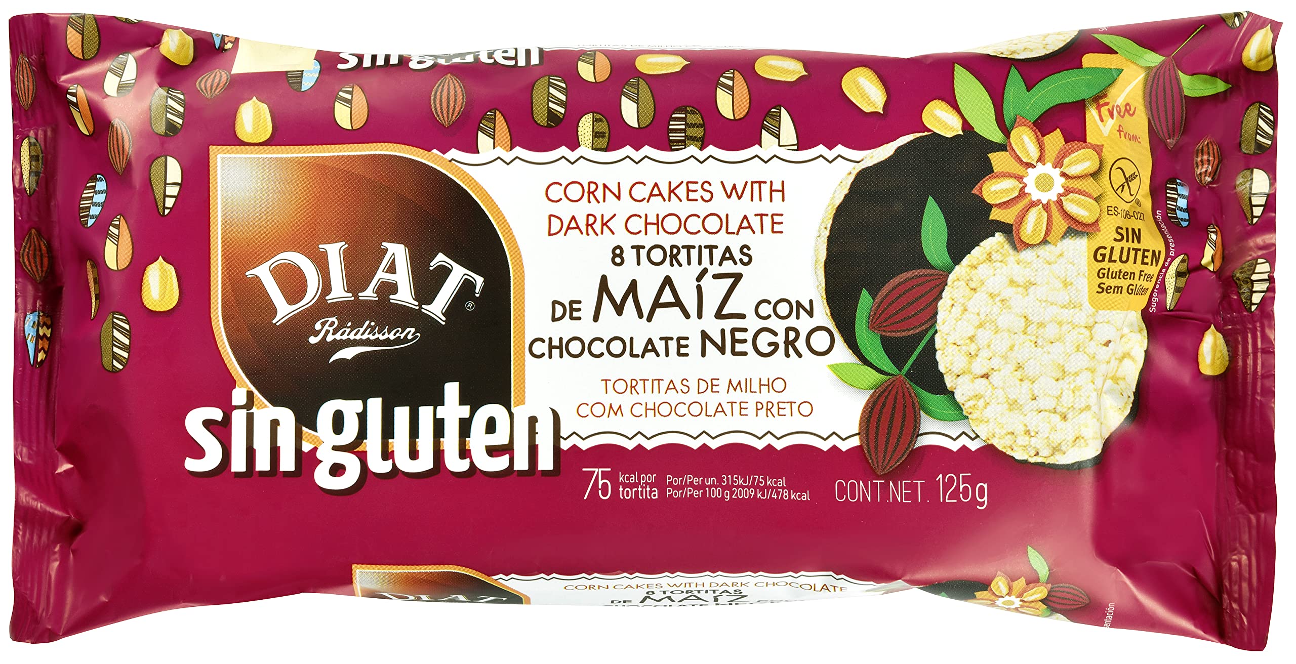 Crispy and light corn pancakes with a delicious, thin layer of dark chocolate, very aromatic and with an intense flavor, for self-care. Made with authentic and tasty puffed corn that helps to satisfy the appetite between hours. Vegan, certified gluten-free and made with genetically unmodified (non-GMO) ingredients. We love to accompany you and share a healthier life with balanced and tasty products so you can enjoy taking care of yourself. INGREDIENTS Dark chocolate (50 ), (cocoa paste, sugar, cocoa butter, emulsifier (soy lecithin), natural vanilla flavor), corn (49.8 ), extra virgin olive oil and emulsifier (sunflower lecithin).Storage: Store in a cool, dry place. Close the bag tightly once opened. Its ideal storage temperature is around 20 C. Low in sodium: Low-sodium crepes, ideal for low-salt diets. Light: 75 kcal per crepe. A pleasure for the palate without neglecting your figure! Made with natural ingredients, without artificial colors or preservatives. The corn used is non-GMO (not genetically modified). High in fiber: These crepes are a good source of fiber. Product suitable for vegans, made without ingredients of animal origin. Gluten-free: Suitable for people with gluten intolerance or those who wish to reduce their consumption, thanks to its ingredients and strict control throughout the manufacturing process. Certified by the European Licensing Scheme with the ELS symbol of the crossed-out ankle. Croquantes et légères crêpes de maïs avec une délicieuse et fine couche de chocolat noir, très aromatique et au goût intense, pour prendre soin de soi. Réalisées avec du maïs gonflé authentique et savoureux qui aide à apaiser l'appétit entre les heures. Végétaliens, certifiés sans gluten et élaborés avec des ingrédients génétiquement non modifiés (non OGM). Nous aimons vous accompagner et partager avec vous une vie plus saine avec des produits équilibrés et savoureux pour que vous puissiez profiter de prendre soin de vous. INGRÉDIENTS Chocolat noir (50 ), (pâte de cacao, sucre, beurre de cacao, émulsifiant (lécithine de soja), parfum naturel de vanille), maïs (49,8 ), huile d'olive extra vierge et émulsifiante (lécithine de tournesol).Conservation : conserver dans un endroit frais et sec. Bien fermer le sac une fois ouvert. Sa température idéale de stockage est d'environ 20 C. Faibles en sodium : crêpes à faible teneur en sodium, idéales pour les régimes faibles en sel. Légères : 75 kcal par crêpe. Un plaisir pour le palais sans négliger votre ligne ! Élaborées avec des ingrédients naturels, sans colorants ni conservaLe maïs utilisé est non transgénique (pas génétiquement modifié). Riches en fibre : ces crêpes sont une bonne source de fibre. Produit adapté aux végétaliens, élaboré sans ingrédients d'origine animale. Sans gluten : convient aux personnes souffrant d'intolérance au gluten ou à ceux qui souhaitent réduire leur consommation, grâce à ses ingrédients et à un contrôle strict dans l'ensemble du processus de fabrication. Certifié par le système de licence européenne avec le symbole ELS de la cheville barrée.