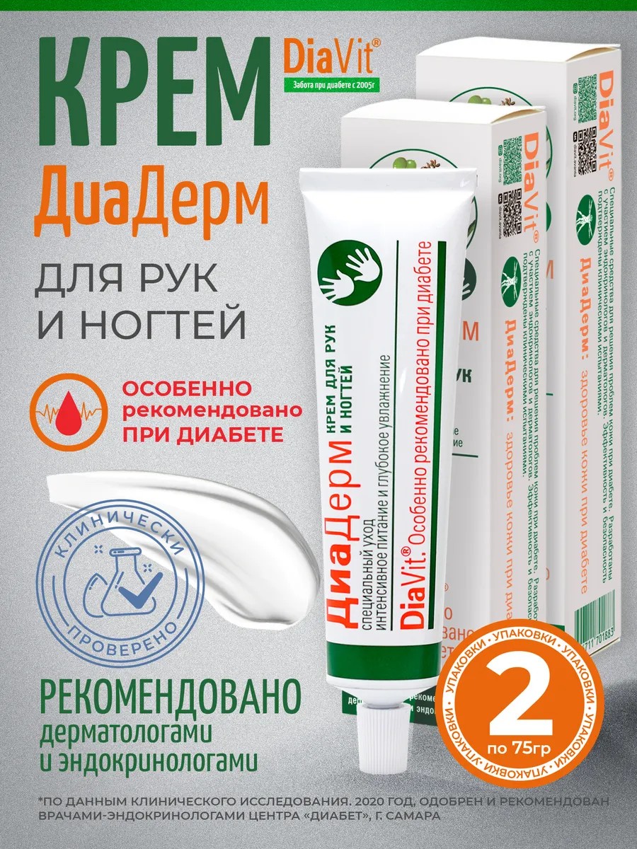 DiaVit Крем для рук и ногтей ДиаДерм питание и увлажнение 150 мл