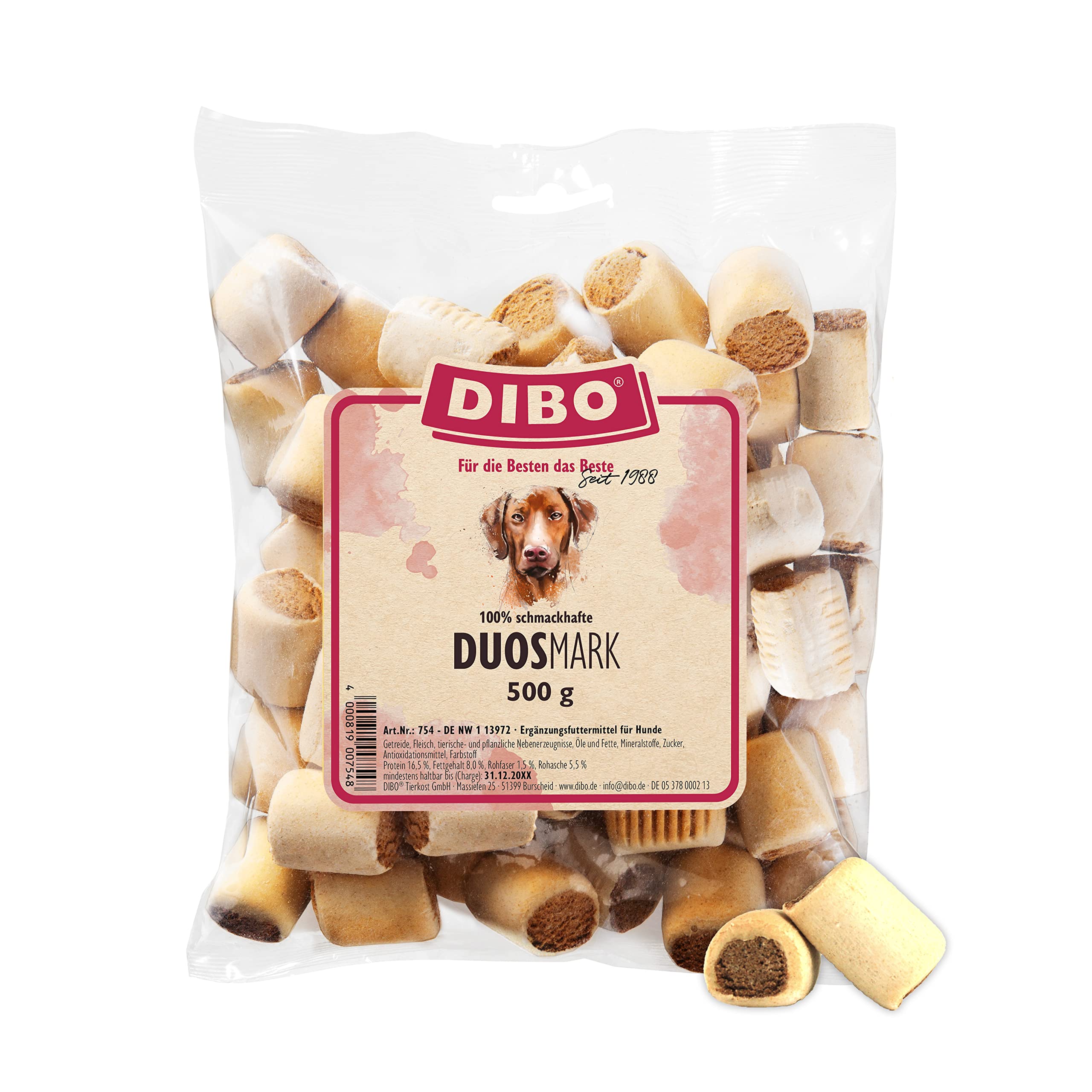 DIBO Duos-Mark, 500g-Beutel, Backwaren als gesunde, natürliche Ernährung für Hunde, Hundefutter, Barf, B.A.R.F., Leckerli, Hundekekse Duos-Mark 500 g (1er Pack)