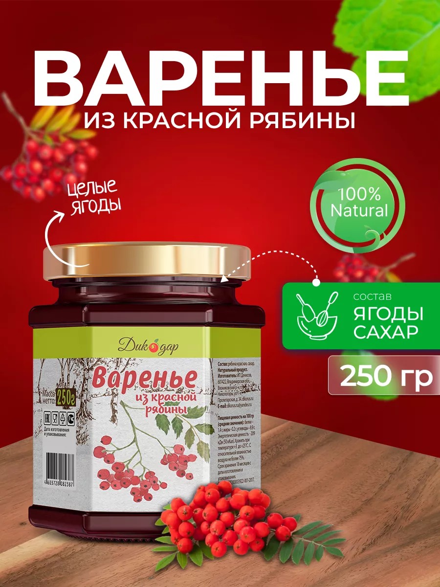 Дикорус Варенье из красной рябины, 250 гр, вкусный подарок