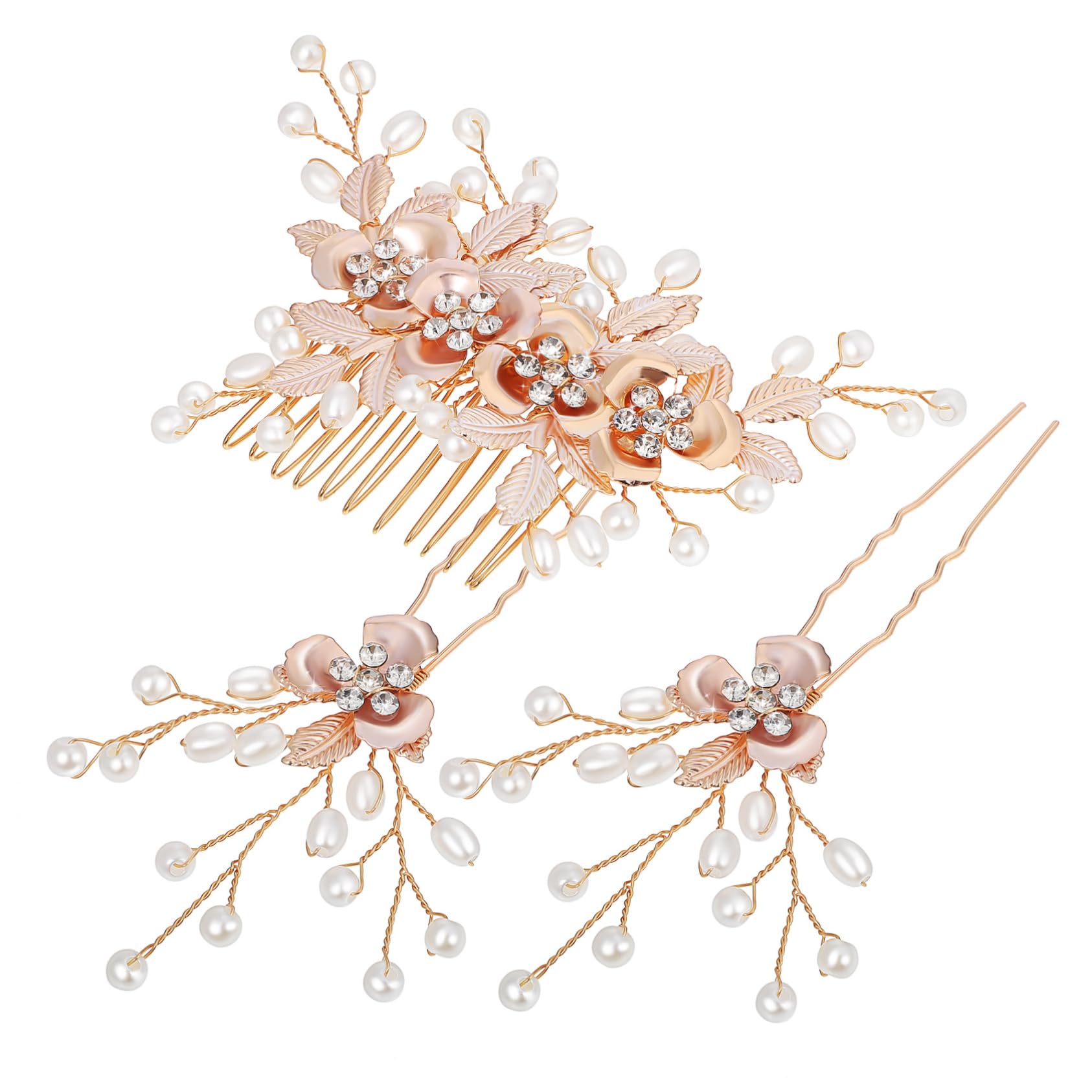 Package Include 3 x hair pins Features -Color:Golden wedding headpiece for bride - Unique design: The hair comb clips feature a unique design that stands out from ordinary hair accessories, making you more charming Hair Combs And Clips. -Size:13.00X7.00X0.50cm/5.11X2.75X0 pin. -Material:Fake pearl, metal hair comb clip - Great present: This hair accessory set makes a present for your friends, family, or loved ones who love to dress up and accessorize clips. - Strong material: The hair clips are made of sturdy metal materials and fine craftsmanship, ensuring durability and long-lasting use hair combs for women. - Easy to use: The hair comb clips are easy to use and can be quickly and securely attached to your hair, saving you time and effort bridal hair comb. - Versatile styles: The hair clips come in versatile styles that can be used for casual and formal occasions, making them a must-have accessory pearl hair combs. Goods Information hair fork clip Add a touch of sophistication to your look with our stunning hair accessories.hair side combs This set includes three different styles of hair accessories, providing you with more possibilities to match your hairstyles.Hair Accessories These hair accessories are finely crafted with strong use