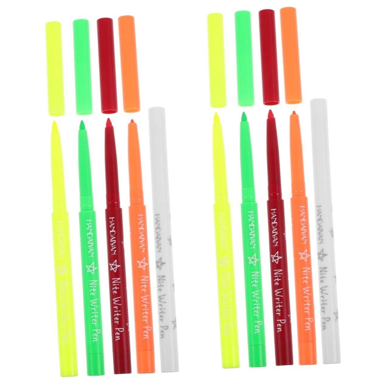 Package Include 10 x pens Features -Size:12.00X0.80X0.80cm 4.72X0.31X0 glow in the dark liner pen. -Material:Plastic fluorescence eye liner -Color:Assorted Color eyeliner pencil - The eyeliner pencil come with appropriate size, making it easy to carry for you when travel fluorescence eyeliner pen. - This eyeliner is ideal for beginners and professional makeup, will bring you a different experience eye line pen. - You can easily to remove eyeliner in seconds with makeup remover, fast and clean, never worry about pigmentation makeup eyeliner pencil. - Manufactured of durable and safe material, eyeliner pencil is safe to use, comfortable to hold and use girl eyeliner makeup pen. - The flexible tip brush and comfortable grip gives optimal control and easy, stable application makeup supply. Goods Description fluorescence eyeliner pen Made by plastic material, it is very safe to use.eye line makeup pencil The eyeliner pen provides a good makeup effect.fluorescence liner This eyeliner pencil is a practical woman makeup eyeliner pen.fluorescence eyeliner Features the simple design, very convenient to carry and use.natural eye makeup pen The simple and fine color can help create a glamorous lookEyeliner pen fluorescence: classical color design, long-lasting makeup effect, compact size, eyeliner pen is practical to use. Woman eyeliner pen: the pen exquisite, and you can sketch light, natural, clear and accurate eye line without effort. Glow eyeliner pencil: the pointed pen tip makes it easy to use, to help you to draw a natural and smooth eye line. Eye cosmetics tool: the pen exquisite, and you can sketch light, natural, clear and accurate eye line without effort. Eye line makeup tool: the eye lines drawn by our eyeliner will not easily fade, waterproof, highlight the eye.