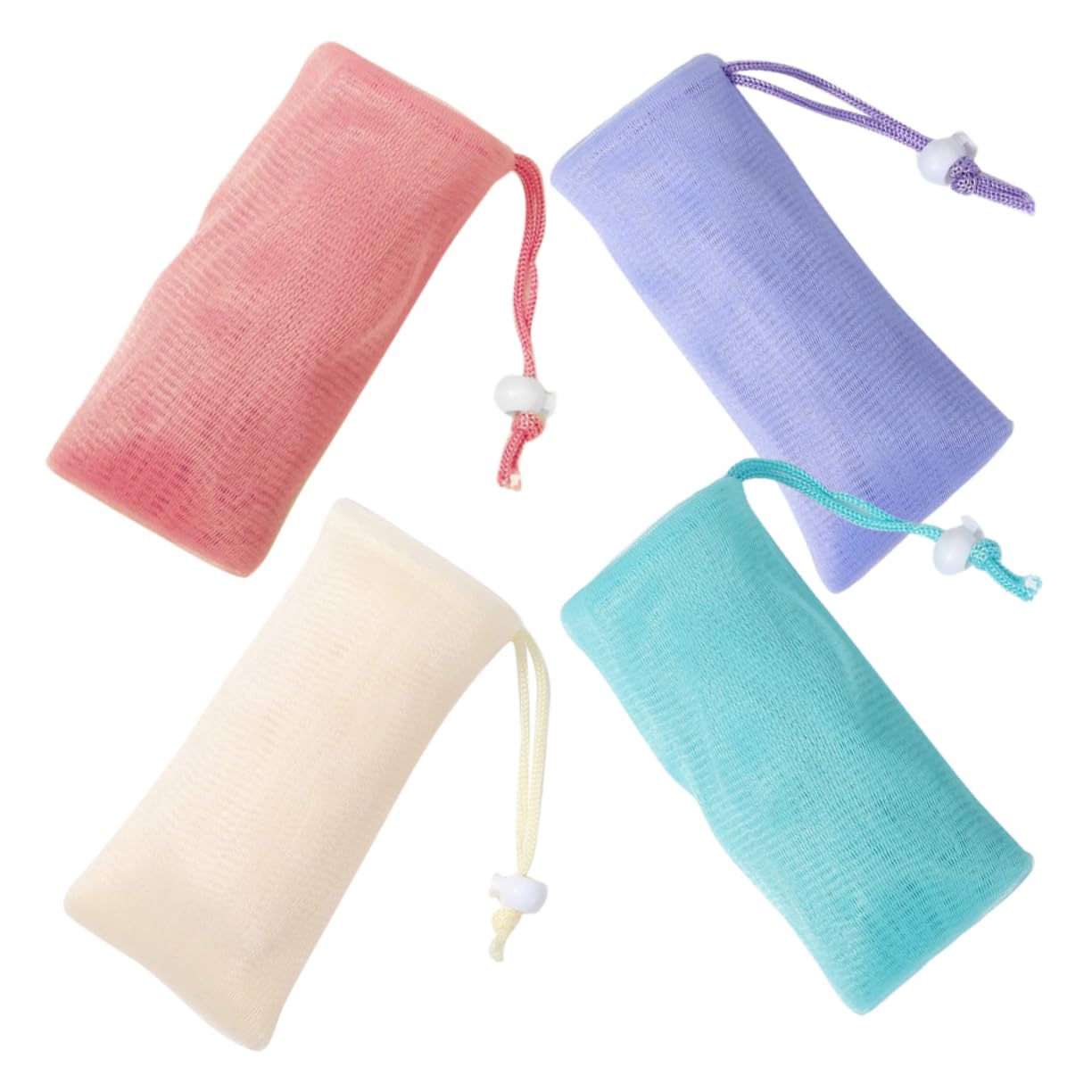 Didiseaon 4 Pièces Pochette Filet à Savon Exfoliant Sac à Savon Moussant pour Douche de Voyage Fait Maison avec Cordon de Serrage pour Nettoyage Corps et Visage
