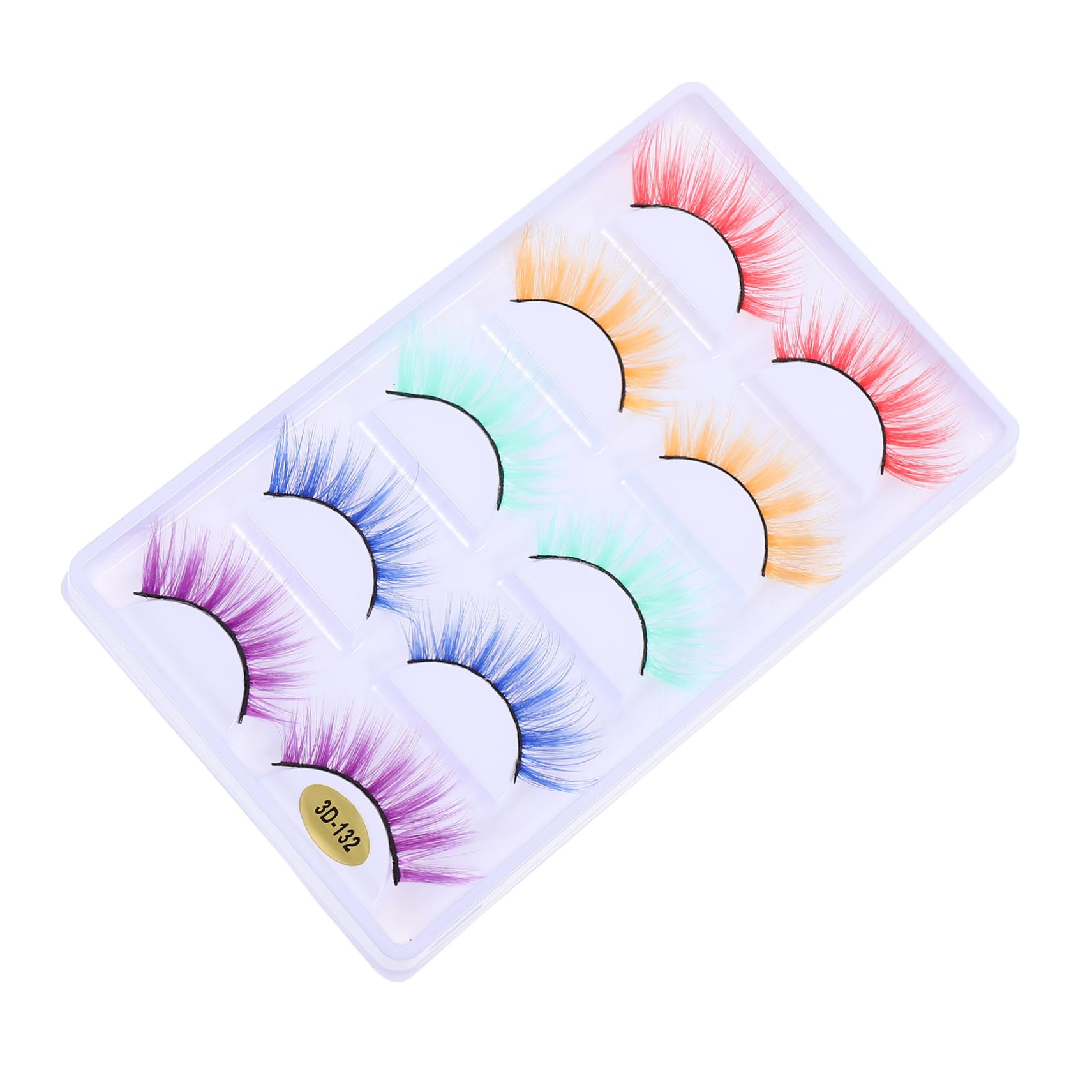 Didiseaon 5 Pairs Fake Eyelashes Rainbow Eyelashes False Lashes with Color Eyelashes Colorful Eyelashes with Color 3d Eyelashes Fluffy Eyelashes Dramatic Long Thick Miss Set Cosplay Fiber