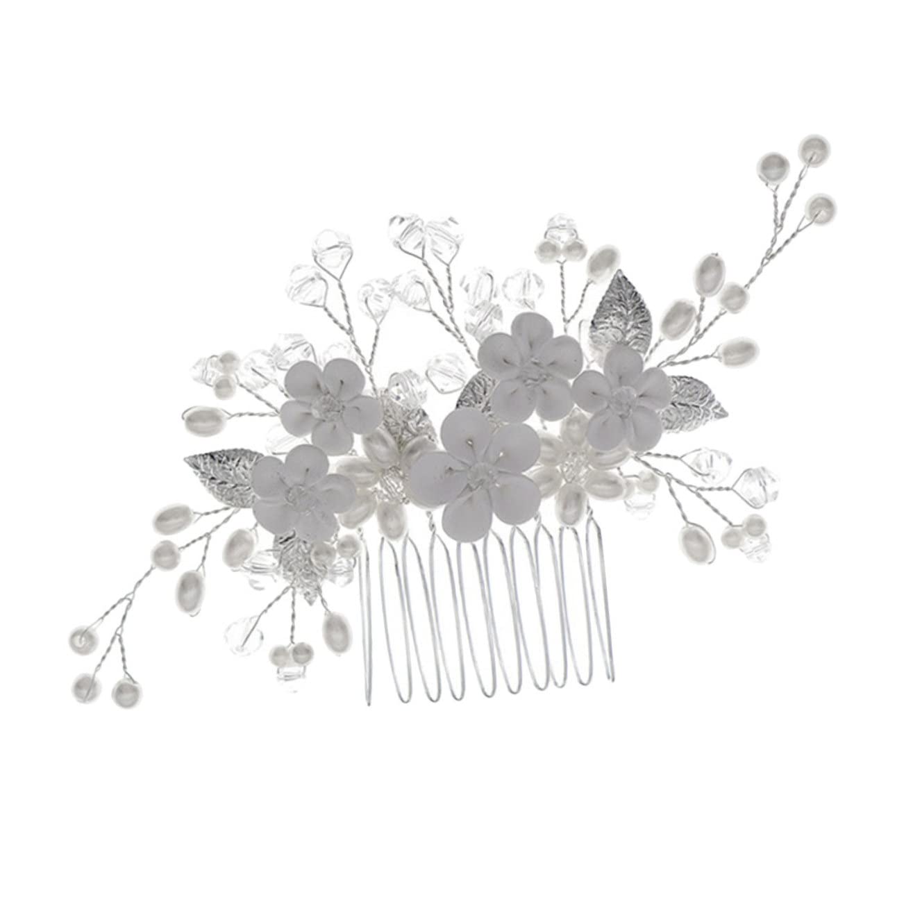 Package List 1 x Headdress Features -Size:13.00X7.50X3.00cm/5.11X2.95X1 lovely hair comb. -Color:Silver bridal hair decor -Material:Metal, ceramic, copper wire, rhinestone, ABS bridal hair side comb -Will not damage the hair when sliding into the bun because of their smooth edges design wedding hair accessories for brides. - for attending parties, ceremonies and daily wearing, and make you look more charming hair comb decor. -Can add some novelty to your clothing, easy to make a elegant hair style. Elegant and unique, can match with your wedding dress perfectly wedding hair comb. -Beautiful flower hair comb, delicate and elegant, pleased to your eyes reusable headdress. -You will be attractive around the crowd, add glamour to make you more attractive at party female head decor. Goods Information bridal hair side comb Hair comb for wedding will modify and decorate your hair better, also keep color for long and not fade.wedding hair ornament Fine workmanship, the flower Hair Comb exquisite detail is charming and attractive.bride headdress The hair comb is made from ceramic material and having the delicate design, it is great for your girl and make her more decent and beautiful