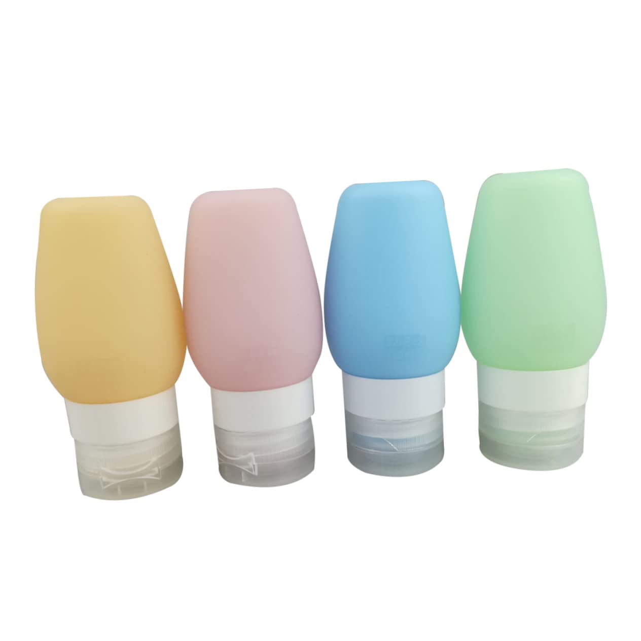 Package List 1 x set of 4Pcs travel bottles Characteristics - Color: Lake Blue, Peach Pink, and Orange Apricot Travel Bottles Set - Capacity: 60ML Portable Travel Bottle. - Size: 10 x 6.6 x 6 cm. - Material: Silicone. - Rubber is strong/thick enough so it can not get accidentally punctured Travel Bottles. - Gets through airport security without any issues Travel Containers. - Reusable option for travel,durable,flexible and safety material Silicone Tubes. - Simple solution for a frequent traveler,best space-saving bottles Travel Accessories. - If you hate having bottles leak,these are your best friends,amazing travel size carry on bottles. - Holds your shampoo,conditioner,lotion,bodywash etc without any leaks and is sealed in. - Easily remove the liquid and clean the travel bottles. - enough to be a good fit in your shower bag inside your gym bag. Goods Information Small Travel Bottle Worried that your costly makeup leak outside of the travel bottles to make your luggage in mess? Easy to refill due to the large opening when unscrewing the and even easy to squeeze out the last bits of conditioner in order to make sure your conditioner not being wasted