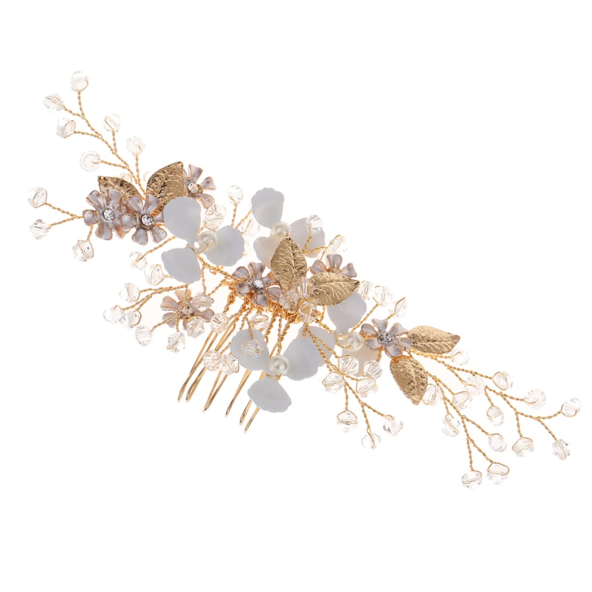 Didiseaon Vintage Hair Comb Rhinestone Gold Hair Comb Gold Leaf Hair Comb Flower Hair Combs for Women Decorative Pearl Hair Comb Rhinestone Hair Comb Tiara Hair Accessories Wedding Bride