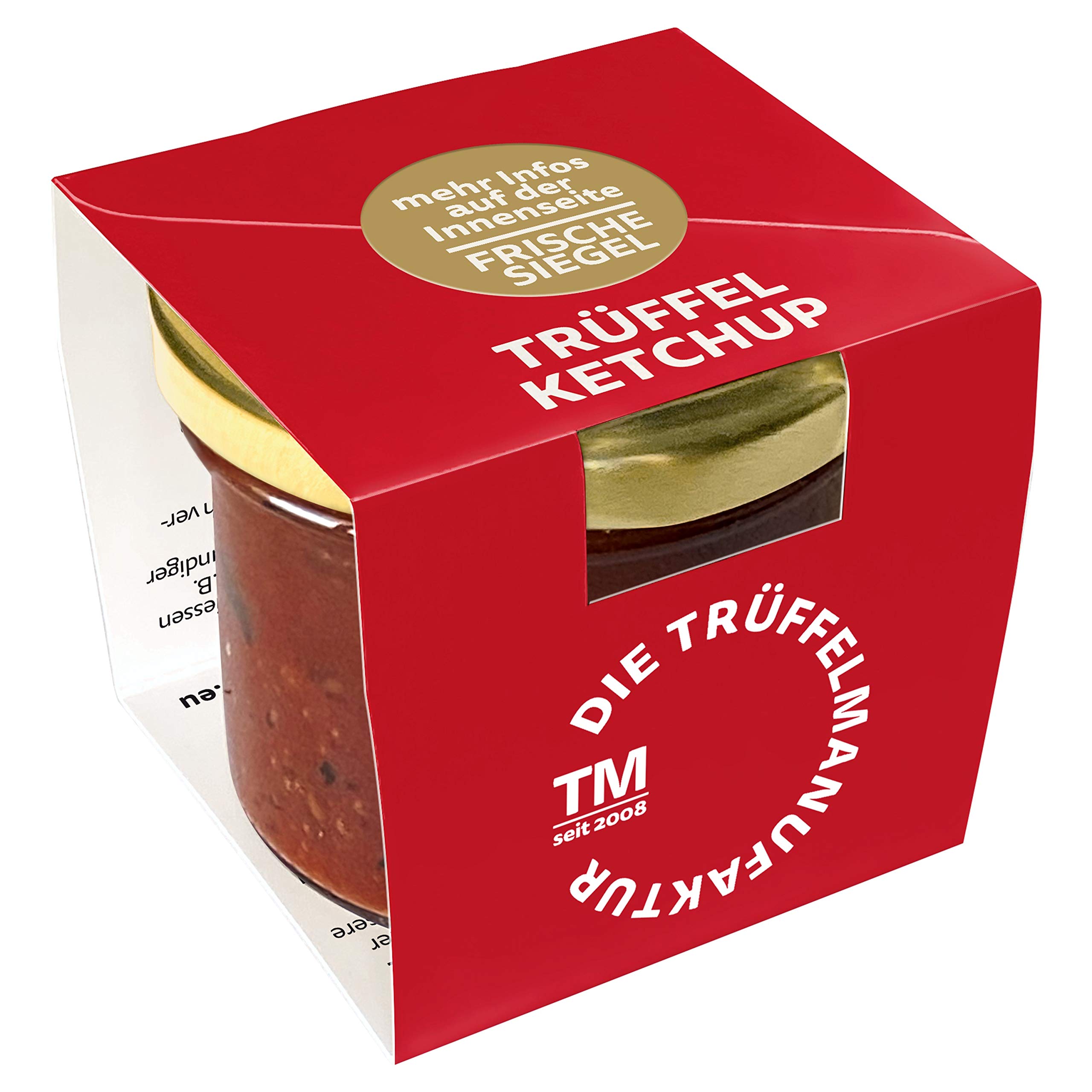 Our truffle ketchup in a 110g jar. Extra-fine tomato ketchup with real black truffle, gently blended. Sustainably sourced. This gourmet delicacy is undoubtedly the highlight of every barbecue. The fruity taste of the barbecue sauce is perfectly complemented. With the slightly nutty aromatic note of our black truffles. The exclusive taste of this gourmet truffle sauce complements every barbecue dish and is therefore the perfect crowning touch for grilled steaks, ribs, chicken wings, Burgerpattys, spare ribs, and sausages. The sauce can also be used as a hamburger sauce or for marinating and dipping freshly grilled meat and vegetables. This delicacy is particularly delicious. With fine food specialties such as pulled pork. Especially for barbecue lovers. Perfect gift for Christmas, birthdays, and Easter. Treat your loved ones – this gourmet sauce is also an excellent gift idea for weddings, christenings, Mother's Day, and Father's Day. Features: With 7 natural black truffles. Delicate, fruity, and slightly nutty flavor. The perfect sauce for all hot and cold dishes. The ideal specialty for gourmets at barbecues. Ingredients: Tomato ketchup (tomato paste 83 , sugar, crisp wine vinegar, table salt, mustard, spices), truffle 7 , modified starch, flavoring. Allergens: mustard. Average nutritional values per 100g: 321 kJ 75 kcal, fat: 0.2 g, of which saturates: 0.1 g. Carbohydrates: 17 g, of which sugars: 14 g, protein 0.7 g, salt 1.7 g. Additional information: Store in a cool, dry, and dark place. INGREDIENTS Tomato ketchup (tomato paste 83 , sugar, crisp wine vinegar, salt, mustard, spices), truffle 7 , modified starch, flavoring.Die Trüffelmanufaktur Ketchup aux truffes avec 7 de truffes noires authentiques, ketchup de luxe aux tomates pour de délicieuses frites croustillantes ou des steaks juteux, des côtes, des côtes, desDESCRIPTION DU PRODUIT DESCRIPTION DU PRODUIT Notre ketchup truffe dans un verre de 110 g. Ketchup à la tomate très fin avec véritable truffe noire en douceur Culture durable. Cette délicatesse gourmande est sans doute le point fort de chaque soirée barbecue. Le goût fruité de la sauce barbecue se complète parfaitement. Avec la note aromatique légèrement noisette de nos truffes noires. Le Le goût exclusif de la sauce truffe gastronomique complète chaque plat de barbecue et C'est donc le couronnement parfait pour les steaks grillés, les côtes, les ailes de poulet, Burgerpattys, côtes levées et saucisses. La sauce peut également être utilisée comme Sauce pour hamburger ou pour faire mariner et tremper de la viande et des aliments fraîchement grillés. les légumes. La délicatesse est particulièrement savoureuse. Spécialités de nourriture fine comme le porc effiloché. Surtout pour les amateurs de barbecue. Cadeau parfait pour Noël, un anniversaire mais aussi pour Pâques. Faites plaisir à vos proches – la sauce gastronomique est également une excellente Idée cadeau pour mariage, baptême, fête des mères et fête des pères. Caractéristiques : Avec 7 de truffes noires naturelles. Saveur fine, fruitée et légèrement noisette. - Le point fort de la sauce pour tous les plats chauds et froids. La spécialité parfaite pour les gourmets pour les barbecues. Ingrédients : ketchup à la tomate (pâte de tomate 83 , sucre, vinaigre de vin vif, sel de table, moutarde, épices), truffe 7 , amidon modifié, arôme. Allergènes : moutarde. Valeurs nutritionnelles moyennes pour 100 g : 321 kJ 75 kcal, matières grasses : 0,2 g, dont acides gras saturés : 0,1 g. Glucides : 17 g, dont sucres : 14 g, protéines 0,7 g, sel 1,7 g. Informations supplémentaires : Conserver dans un endroit sec, frais et sombre. INGRÉDIENTS Ketchup à la tomate (pâte de tomate 83 , sucre, vinaigre de vin vif, sel, moutarde, épices), truffe 7 , amidon modifié, arôme.