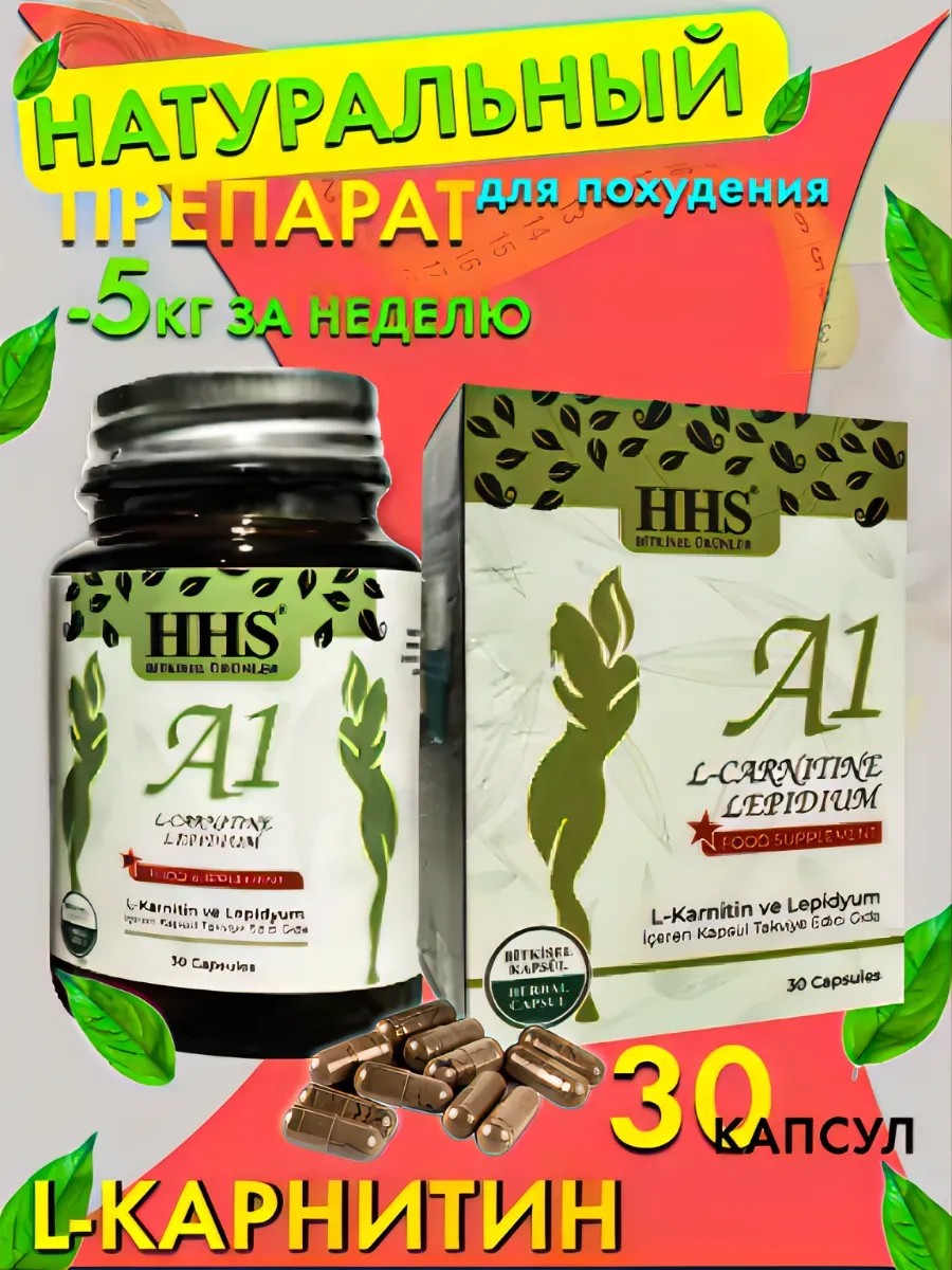 Поддерживает здоровый метаболизм: Способствует нормализации обменных процессов и контролю аппетита.- Удобная форма: Легко принимать перед тренировками для максимального эффекта.Выберите A1 для похудения и начните свой путь к стройной фигуре с надежным помощником в борьбе с лишним весом!Препарат для похудения HHS - A1 Состав Пороховая кора, L-карнитин, кардамон, имбирь, гарциния, лапидус, галангал, фенхель, корица, гвоздика, семена укропа. L-карнитин является популярным дополнением, используемым для стимуляции потери веса и сжигания жира. Это аминокислота, которая играет важную роль в метаболизме жиров, позволяя организму использовать жир в качестве источника энергии. Преимущества L-карнитина включают его способность увеличивать выносливость и улучшать спортивные показатели. Когда вы употребляете L-карнитин перед тренировкой, он помогает вашим мышцам использовать жиры в качестве топлива, что может способствовать улучшению выносливости и увеличению энергетического баланса. Это позволяет вам тренироваться дольше и более интенсивно.