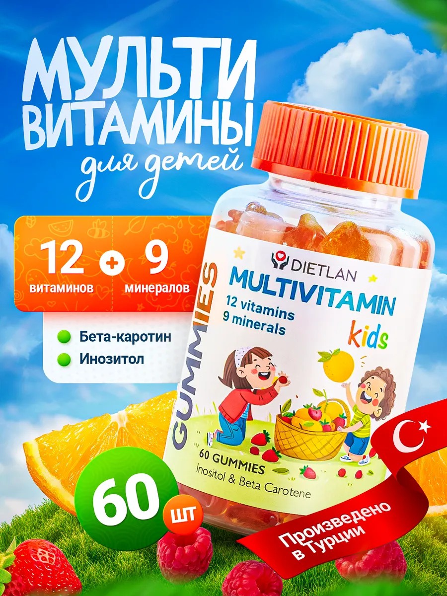 Мультивитамины для детей от DIETLAN Multivitamin Kids — это сбалансированный комплекс 12 витаминов и 9 минералов, разработанный специально для детей от 4 лет. Укрепляет иммунитет, поддерживает умственное и физическое развитие, способствует правильному росту и повышает жизненный тонус. Удобная форма в виде жевательных конфет с приятным фруктовым вкусом — дети с радостью принимают каждый день!