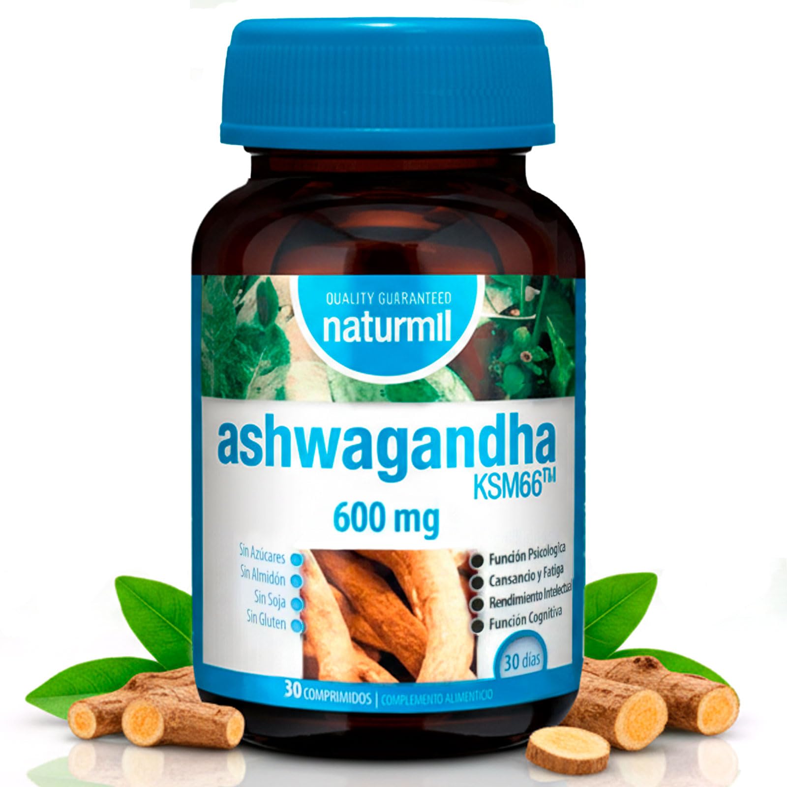 ASHWAGANDHA 600 MG 30 TABLETS INGREDIENTS Withania somnifera (Ashwagandha KSM66TM, patented dry root extract) bulking agent: microcrystalline cellulose zinc oxide anti-caking agent: magnesium salts of fatty acids calcium D-pantothenate cyanocobalamin 0.1 anti-caking agent: silicon dioxide pyridoxine hydrochloride thiamine hydrochloride. DIRECTIONS Take 1 tablet daily, preferably after breakfast. Take with at least 1 or 2 glasses of water. SAFETY WARNING Do not exceed the expressly recommended daily dose. Store in a cool, dry place away from direct sunlight. Dietary supplements should not be used as a substitute for a varied and balanced diet and a healthy lifestyle. Do not take if you are hypersensitive to any of the ingredients. Keep out of reach of young children. See more