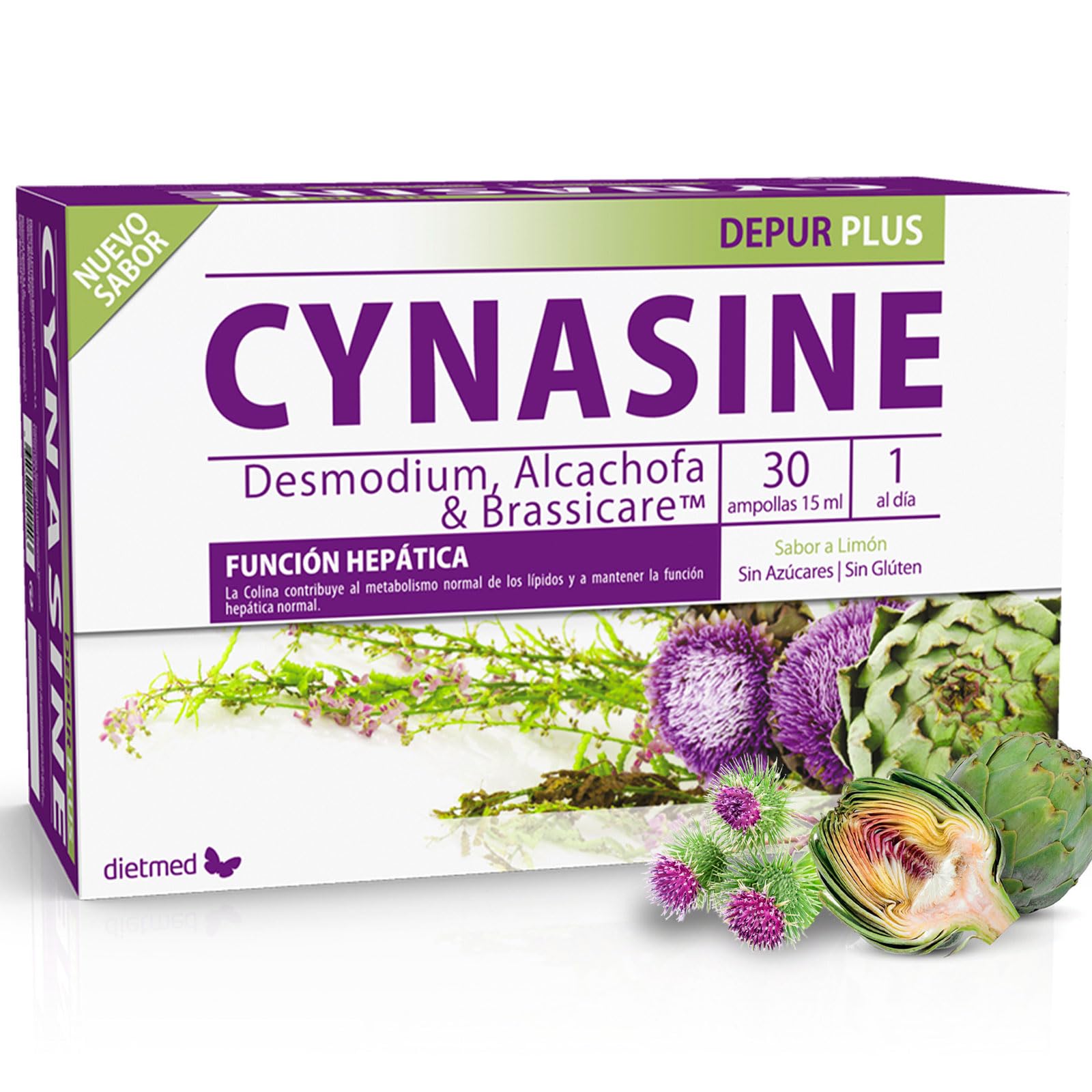 The liver is capable of detoxifying, eliminating, storing, and synthesizing countless chemicals from nutrients obtained through food, and it also helps the skin breathe. Since maintaining a varied and balanced diet isn't always easy, especially with a stressful lifestyle full of intoxicating agents (air pollution, pesticides, alcohol, drugs, etc.), it's important to use dietary supplements or herbal products that have a protective effect on the liver. INGREDIENTS Water, thickener: sorbitol, Silybum marianum (milk thistle, plant), Taraxacum officinale (dandelion dry leaf extract), BrassicareTM (Brassica oleracea L. var. Italia 40:1 dry broccoli extract, containing at least 1.6 glucorophanin), Cynara scolymus (artichoke dry plant extract containing at least 5 cinarin), Desmodium adscendens (Desmodium 5:1 dry leaf extract), choline citrate, L-ascorbic acid, lemon flavor, preservative: potassium sorbate, acidity regulator: citric acid, sweetener: sucralose. DIRECTIONS Take 1 ampoule daily, preferably before breakfast. Can be diluted in water or fruit juice. Alternatively, you can dilute the ampoule in 1.5 liters of water. Drink the mixture throughout the day. SAFETY WARNING Do not exceed the expressly recommended daily dose. Store in a cool, dry place away from direct sunlight. Food supplements should not be used as a substitute for a varied and balanced diet and a healthy lifestyle. Do not take if you are hypersensitive to any of the ingredients. Keep out of reach of young children. See moreComposition: Milk thistle 1000 mg, Desmodium 500 mg, Dandelion 250 mg, Brassicare 200 mg (broccoli, containing at least 3.2 mg of glucorophin), Artichoke (containing at least 5 cynarin) 125 mg, choline 100 mg, and vitamin 80 mg (100 NRV ). Nutrient Reference Value. Inducer of phase II liver detoxification enzymes. Purifying action. Formula enriched with Desmodium.Dietmed Cyne Depur Plus - 30 x 15 ml Ampoules Desmodium, Artichaut Brassicare (extrait de brocoli breveté)DESCRIPTION DU PRODUIT DESCRIPTION DU PRODUIT Le foie est capable de détoxifier, éliminer, stocker et synthétiser d'innombrables produits chimiques à partir de nutriments provenant de l'alimentation, et il aide également la peau à respirer. Une fois que l'adoption d'une alimentation variée et équilibrée n'est pas toujours facile à maintenir, associée à une vie stressante et pleine d'agents enivrants (pollution atmosphérique, pesticides, alcool, drogues, etc.), il est important d'utiliser des compléments alimentaires ou des produits à base de plantes qui ont une action protectrice hépatique. INGRÉDIENTS Eau, épaississant : sorbitol, silybum marianum (chardon-Marie, plante), Taraxacum officinale (pissenlit extrait sec des feuilles), BrassicareTM (Brassica oleracea L. var. Italie extrait sec 40:1 du brocoli, contenant au moins 1,6 de glucorophanine), cynara scolymus (artichaut extrait sec de la plante contenant au moins 5 de cinarine), Desmodium adscendens (Desmodium extrait sec 5:1 des feuilles), choline citrate, acide L-ascorbique, arôme Citron, conservateur : Sorbate de potassium, correcteur d'acidité : acide citrique, édulcorant : sucralose. MODE D'EMPLOI Prendre 1 ampoule par jour, de préférence avant le petit déjeuner. Peut être dilué dans de l'eau ou dans du jus de fruits. Alternativement, vous pouvez diluer l'ampoule dans 1 litre et demi d'eau. Buvez la préparation pendant la journée. AVERTISSEMENT DE SÉCURITÉ Ne pas dépasser la dose quotidienne expressément recommandée. Conserver dans un endroit frais et sec, à l'abri de la lumière directe du soleil. Les compléments alimentaires ne doivent pas être utilisés comme substituts à une alimentation variée et équilibrée et à un mode de vie sain. Ne pas prendre en cas d'hypersensibilité à l'un des ingrédients. Tenir hors de portée des jeunes enfants. Voir plusComposition : Chardon-Marie 1000 mg, Desmodium 500 mg, Pissenlit 250 mg, Brassicare 200 mg (brocoli, contenant au moins 3,2 mg de glucorophine), Artichaut (contenant au moins 5 de cynarine) 125 mg, choline 100 mg et vitamine 80 mg (100 VRN ) Valeur de référence des nutriments. Inducteur d'enzymes de phase II de désintoxication hépatique. Action purifiante. Formule enrichie en Desmodium.