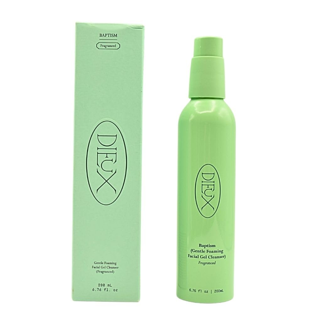 Dieux Baptism Gentle Foaming Facial Gel Cleanser The Dieux Baptism Gentle Foaming Facial Gel Cleanser with Glycerin is more than just a cleanser—it's your first step to radiant, healthy-looking skin. This luxurious, water-based gel transforms into a rich, creamy foam that melts away daily makeup, SPF, dirt, and excess oil while protecting your skin's natural barrier. Unlike harsh cleansers that leave skin feeling tight or stripped, Baptism is infused with 10 Glycerin for long-lasting hydration and 2 Betaine to lock in moisture, so your skin feels soft, supple, and refreshed after every wash. Designed for all skin types—even sensitive skin and contact-lens wearers—this ophthalmologist-tested formula is available with or without fragrance to match your preference. Clean, cruelty-free, and non-comedogenic, it tackles dryness, dullness, and blemishes without irritation, making it the perfect balance of gentle care and powerful cleansing. With Baptism, your skin is left purified, nourished, and beautifully prepped for the rest of your skincare routine—like a fresh reset every time you cleanse.CLEAN SKINCARE: Free from harsh ingredients, this dermatologist- and ophthalmologist-tested cleanser is non-irritating, non-comedogenic, gluten-free, and cruelty-free. VERSATILE FOR ALL SKIN TYPES: Safe for normal, dry, combination, and oily skin—including sensitive skin and contact lens wearers. BARRIER-STRENGTHENING FORMULA: Featuring 2 Betaine, an amino acid that helps prevent moisture loss, it supports a healthy skin barrier for balanced, nourished skin. DEEP HYDRATION WITH 10 GLYCERIN: Packed with a powerhouse hydrator, this cleanser locks in moisture, leaving skin soft, supple, and refreshed after every wash. GENTLE EFFECTIVE CLEANSING: Formulated with an 8.5 Gentle Cleansing Complex, this foaming gel effortlessly removes dirt, sweat, daily makeup, and SPF without stripping skin's natural moisture barrier.