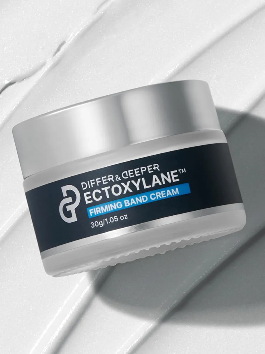 Differ & Deeper Ectoxylane Firming Band Cream, a rejuvenating bandage cream with ectoine and peptides, actively combats age-related changes.