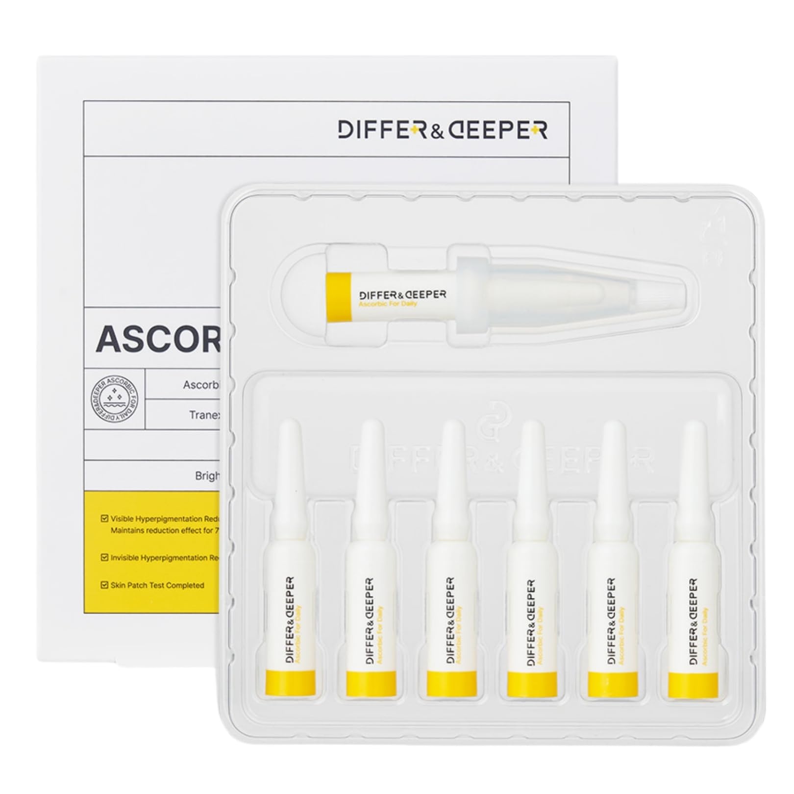 Differ & Deeper Ascorbic For Daily Ampoule 20% Pure Vitamin C Serum Lightweight Formula | K-Beauty Skincare Ampoules (7 x 2ml)