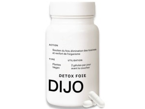 OUR COMMITMENTS: DIJO products are manufactured and stored in France using short supply chains to guarantee the freshness and effectiveness of the bacteria. All our products are developed by experts in microbiology and micronutrition and manufactured in compliance with ISO 9001 and ISO 22000 standards. GASTRO-RESISTANT VEGETABLE CAPSULES: DIJO Liver Detox is a supplement in gastro-resistant vegetable capsules that resist digestive enzymes. All ingredients used are lactose-free, GMO-free and Vegan. A 25-DAY TREATMENT: Liver Detox is a plant-based product that is best taken as a treatment to boost liver function. We recommend taking a 25-day treatment at each change of season it's enough!. SIMPLE DOSAGE: The liver is an organ that functions differently depending on the time of day. At night, the liver activates its detoxification process. This is why it is necessary to take 2 capsules of Liver Detox in the evening with a glass of water to support the liver's detoxification function during the night. A SOURCE OF BENEFITS: An essential organ for the body's functioning, the liver is involved in many processes, including digestion and waste elimination. Liver Detox is a combination of 4 plants that work synergistically to regulate liver activity and also reduce skin impurities by improving skin radiance and clarity.NOS ENGAGEMENTS: Les produits DIJO sont fabriqués et stockés en France en circuit court pour garantir la fraicheur et l'efficacité des bactéries. Tous nos produits sont élaborés par des experts en microbiologie et en micronutrition et fabriqués en respectant les normes ISO 9001 et ISO 22 000. GELULES VEGETALES GASTRO-RESISTANTES : Le Detox Foie DIJO est un supplément en gélules végétale gastro-résistantes permettant de résister aux enzymes digestives. Tous les ingrédients utilisés sont sans lactose, sans OGM et Végan. UNE CURE DE 25 JOURS: Détox foie est un produit à base de plantes qu'il est plus judicieux de prendre en cure, pour booster les fonctions de son foie. Nous recommandons d'effectuer une cure de 25 jours à chaque changement de saison, c'est suffisant !. DOSAGE SIMPLE : Le foie est un organe qui fonctionne différemment selon le moment de la journée. La nuit, le foie s'active au niveau de la détoxification. C'est pourquoi il est nécessaire de prendre 2 gélule de Detox foie le soir avec un verre d'eau, pour soutenir la fonction de détoxification du foie pendant la nuit. UNE SOURCE DE BIENFAITS: Organe essentiel au fonctionnement de l'organisme, le foie est impliqué dans de nombreux processus, dont la digestion et l'élimination des déchets. Détox Foie est une association de 4 plantes qui agissent en synergie pour réguler l'activité hépatique, mais aussi réduire les impuretés cutanées en améliorant l'éclat et la clarté de la peau.
