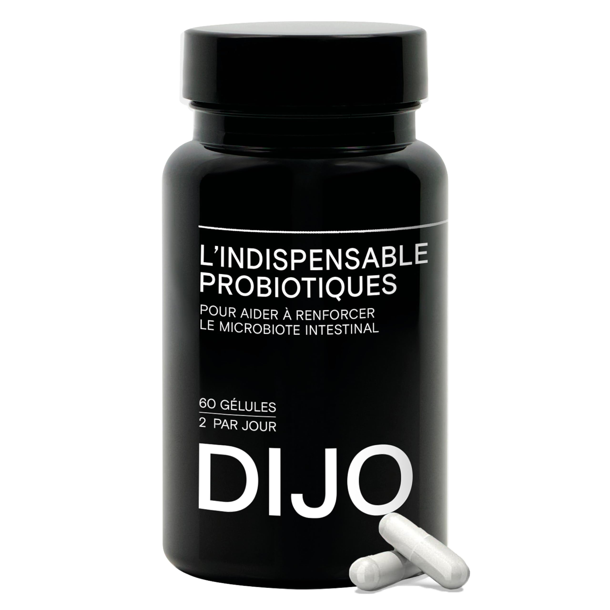 OUR COMMITMENTS: DIJO products are manufactured and stored in France using a short supply chain to guarantee the freshness and effectiveness of the bacteria. All our products are developed by experts in microbiology and micronutrition and manufactured in compliance with ISO 9001 and ISO 22000 standards. GASTRO-RESISTANT VEGETABLE CAPSULES: The essential probiotic is DIJO, a supplement in gastro-resistant vegetable capsules that resist digestive enzymes, allowing them to be released in the intestines. All ingredients are lactose-free, GMO-free, and vegan. SIMPLE DOSAGE: The essential probiotic is the first step towards better health! Two capsules a day with a glass of water, on an empty stomach, 20 to 30 minutes before breakfast, will help strengthen your gut microbiota and combat the loss of certain essential and protective bacteria. Generally, we recommend a course of treatment each season, but it is possible to use Indispensable Probiotics continuously. UNIVERSAL PROBIOTIC: Probiotic effectiveness is optimal when the bacteria used match the host microbiota. Therefore, it is necessary to use a good diversity of strains to guarantee the product's effectiveness. As such, Indispensable Probiotics is composed of 8 strains of beneficial bacteria in high concentrations, including Lactobacillus, Lactococcus, and Bifidobacterium, to suit all digestive systems! A SOURCE OF BENEFITS: Probiotics are beneficial and essential bacteria with numerous benefits that strengthen our own bacteria in the gut. DIJO's Indispensable Probiotics, by strengthening the intestinal flora, improves digestion, boosts the immune system, regulates weight, reduces skin inflammation, and improves mood.