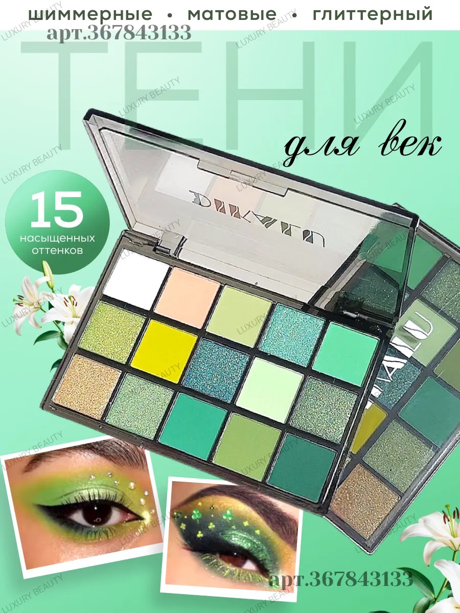Dikalu Палетка теней для век зеленая 15 оттенков