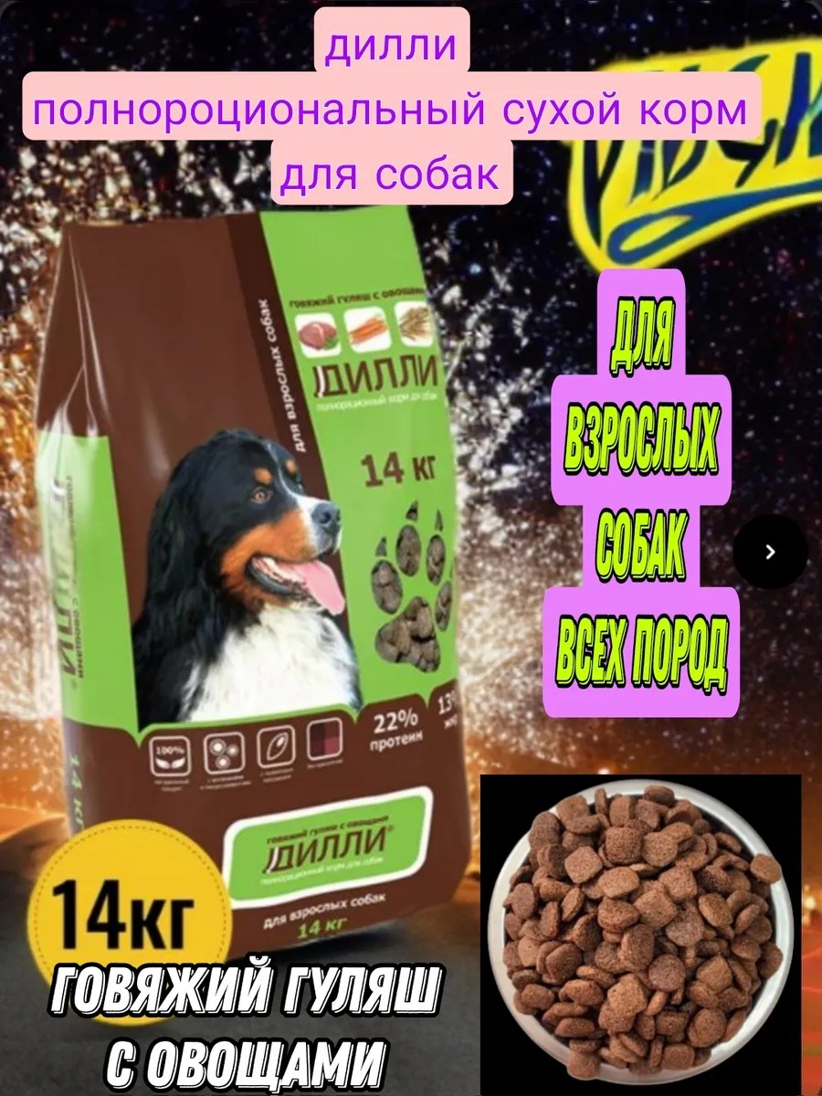 Корм для собак дили 14 кг сухой полнорациональный говяжий